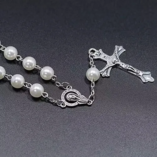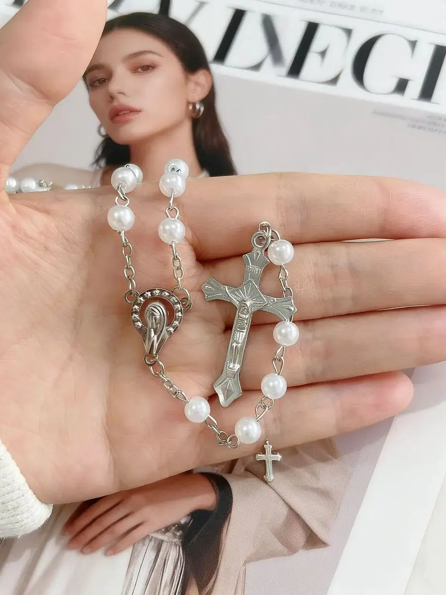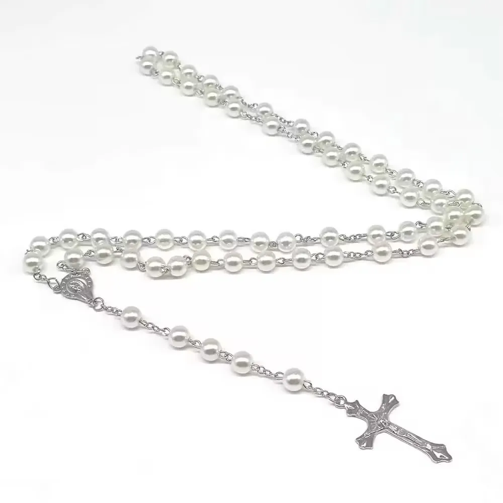 1 Piece Pearl Catholic Rosary Prayer Beads Wood Christian Prayer Beads Rosary C
