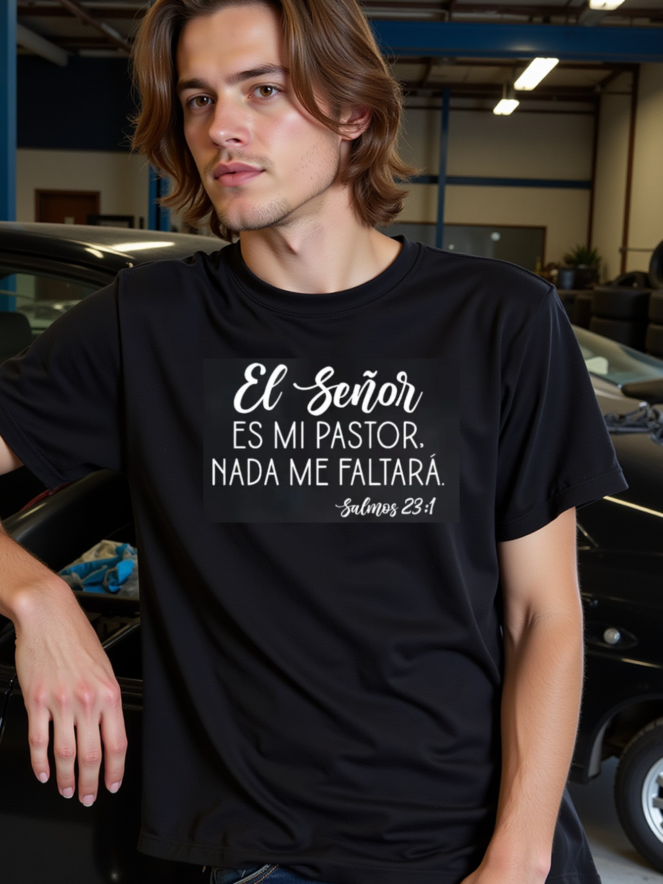 1pc Men's Christian Faith T-Shirt - "The Lord Is My Shepherd" & Psalm 23:1-2 Scr