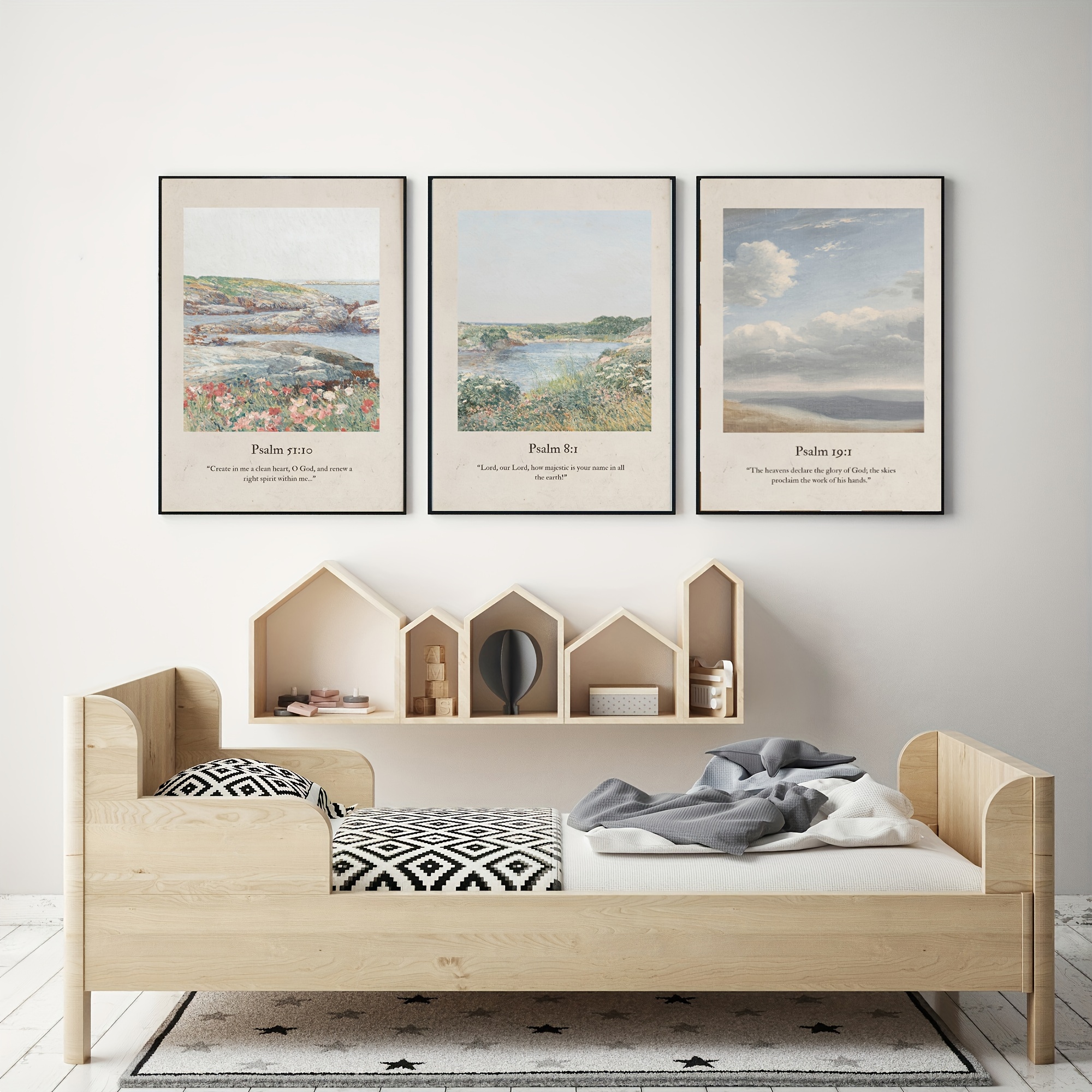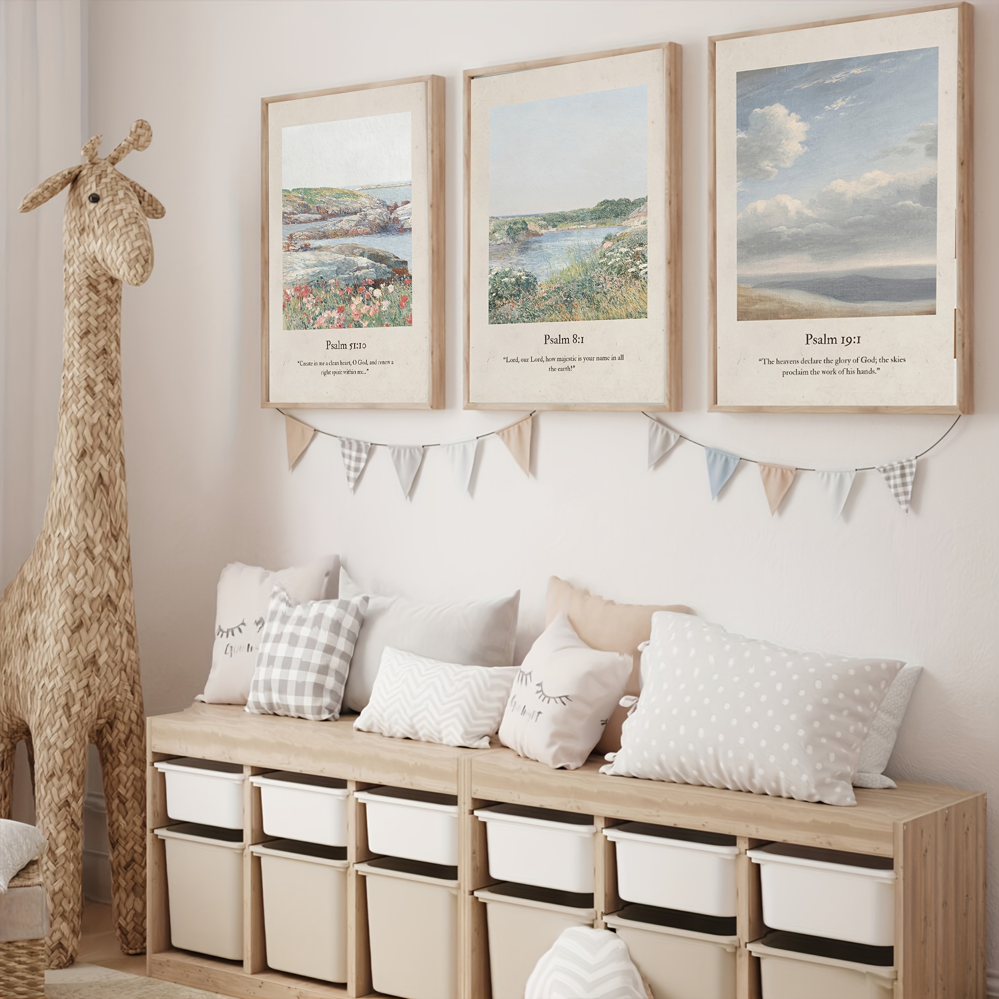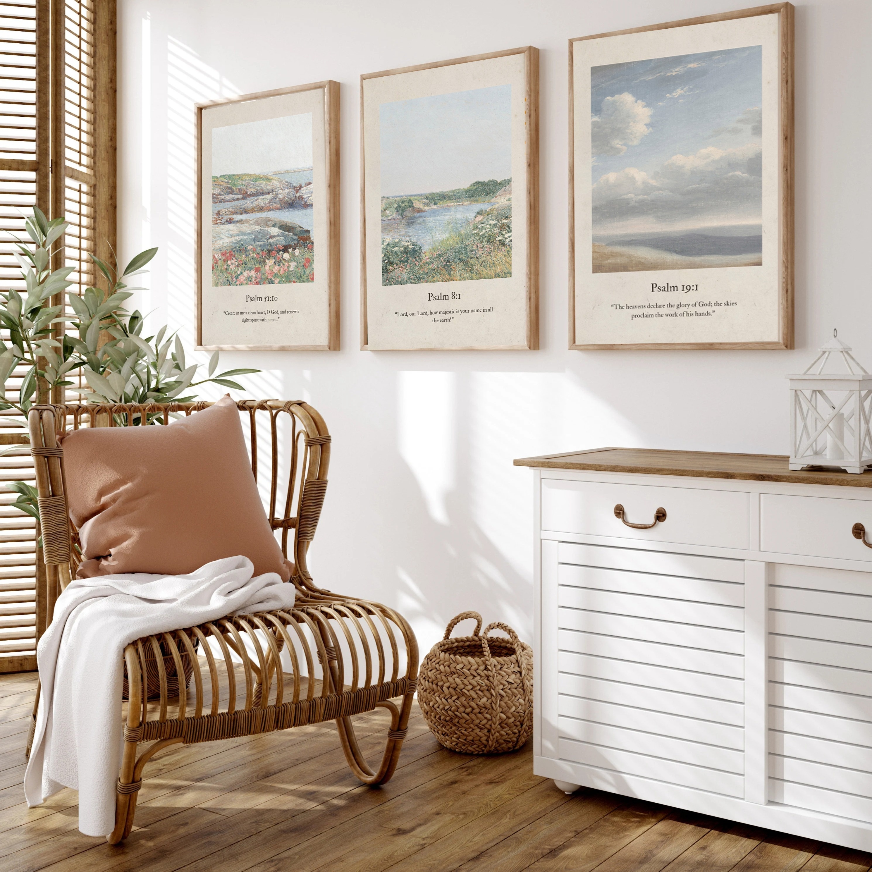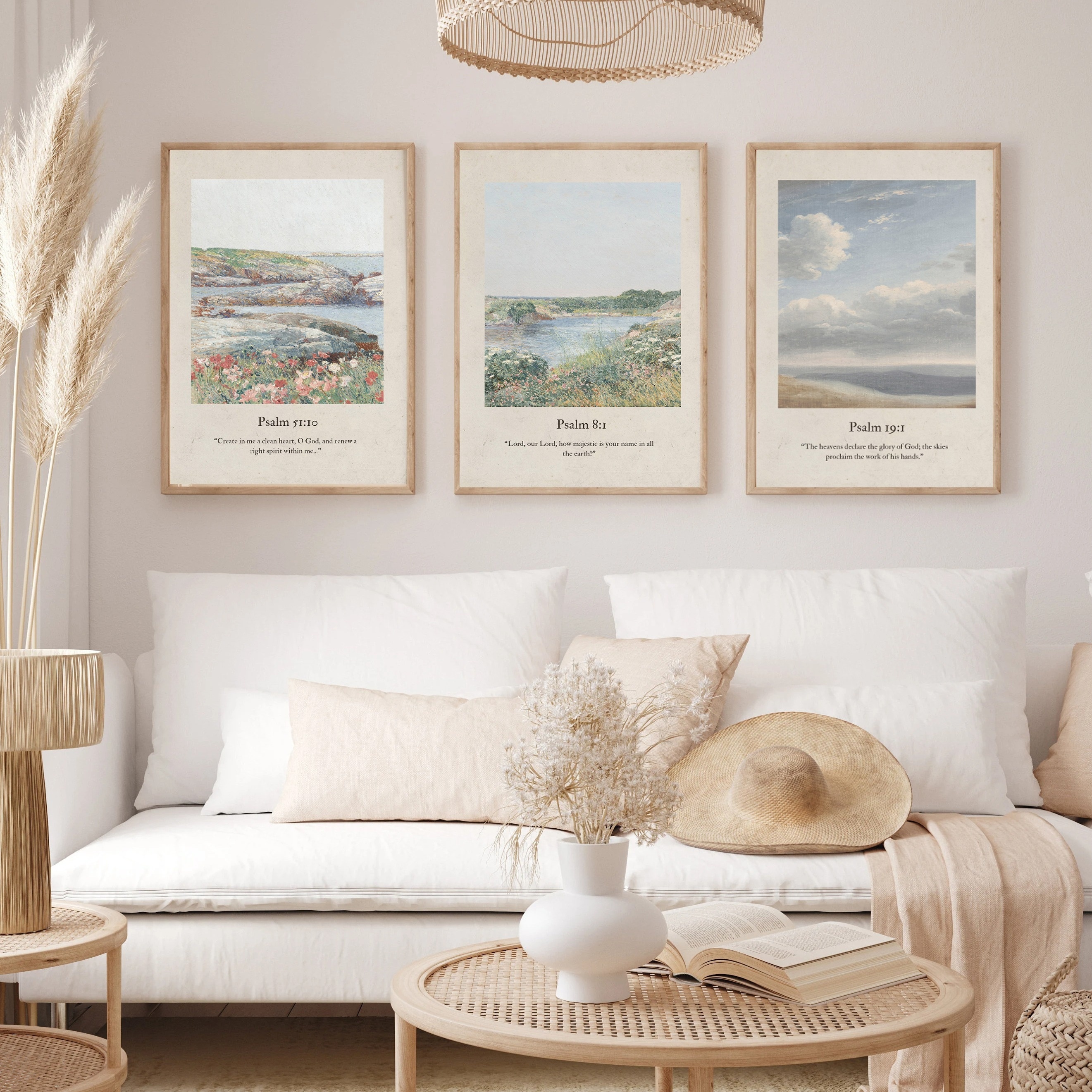 3pcs Christian Scripture Wall Art Set - Psalm & Bible Verse Canvas Prints for Li