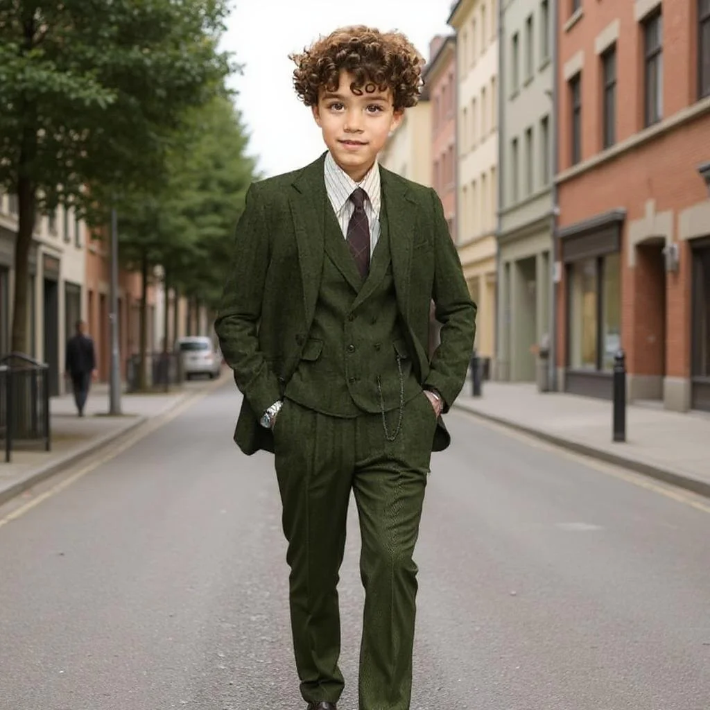 Boys Suits Tweed Herringbone 3 Pieces Formal Kids Wedding Tuxedo Slim Fit Blazer