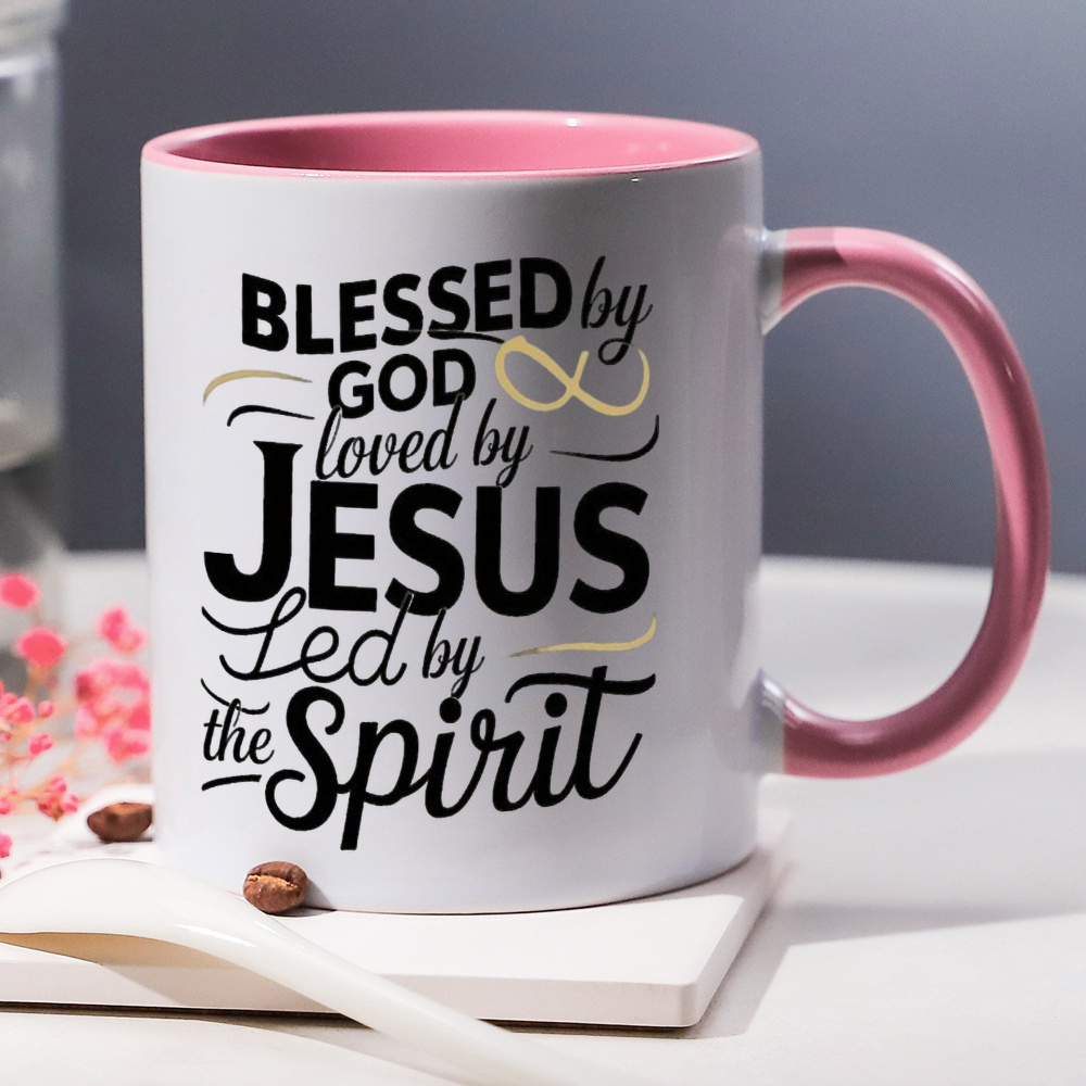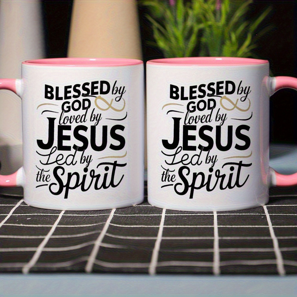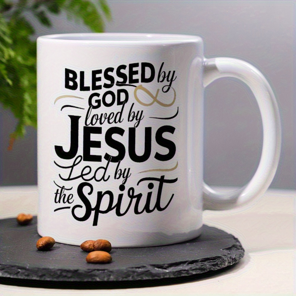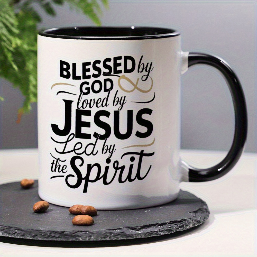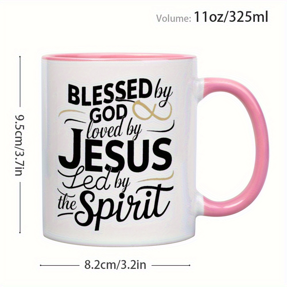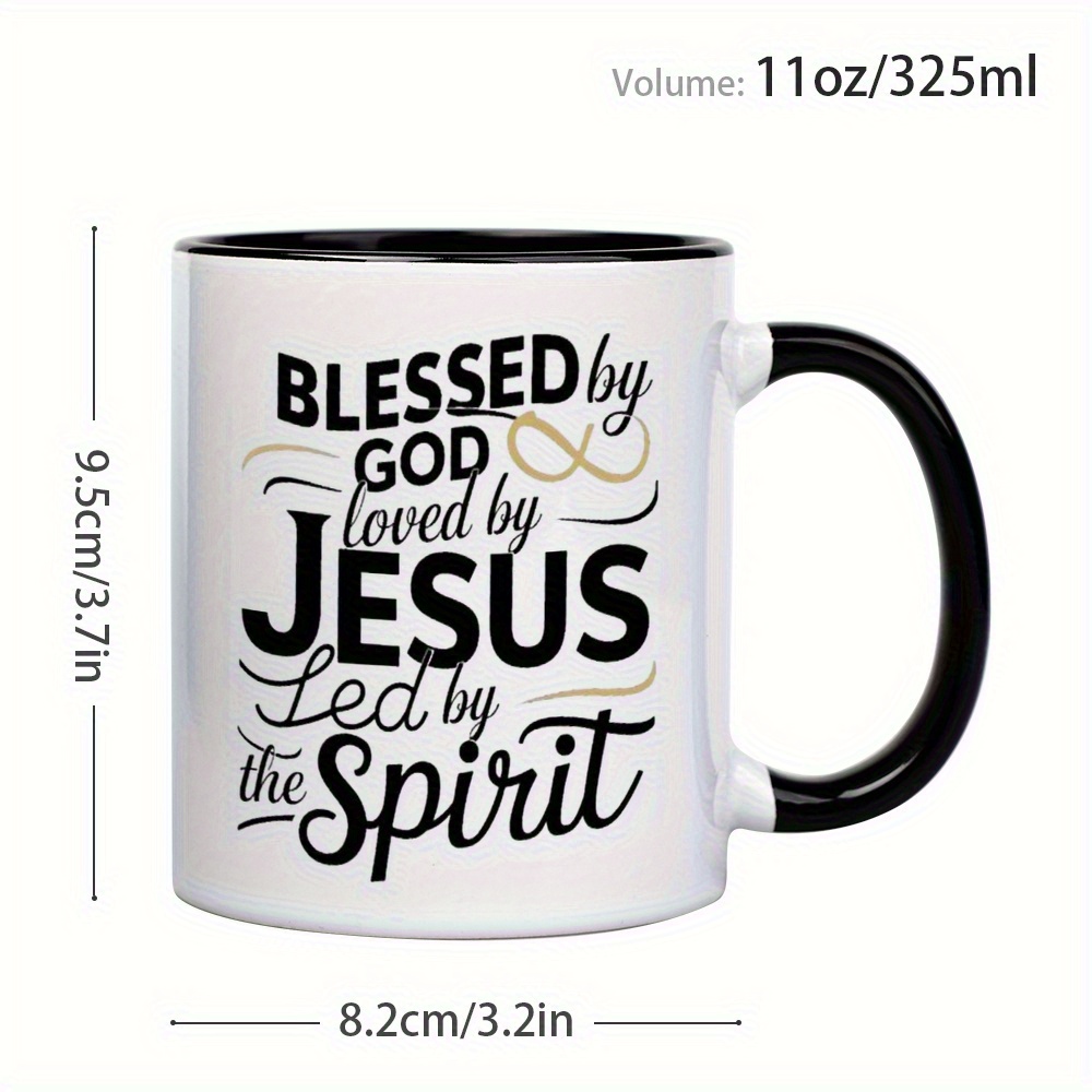Ceramic Coffee Mug 1pc 11oz, 3A Grade, Blessed by god, loved by JUSES, tea cup,