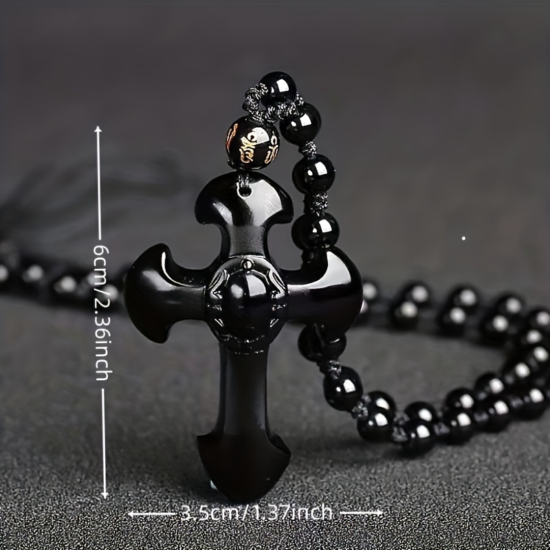 Classic Religious Style Christian Good Luck Amulet Cross Trend Fashion Obsidian