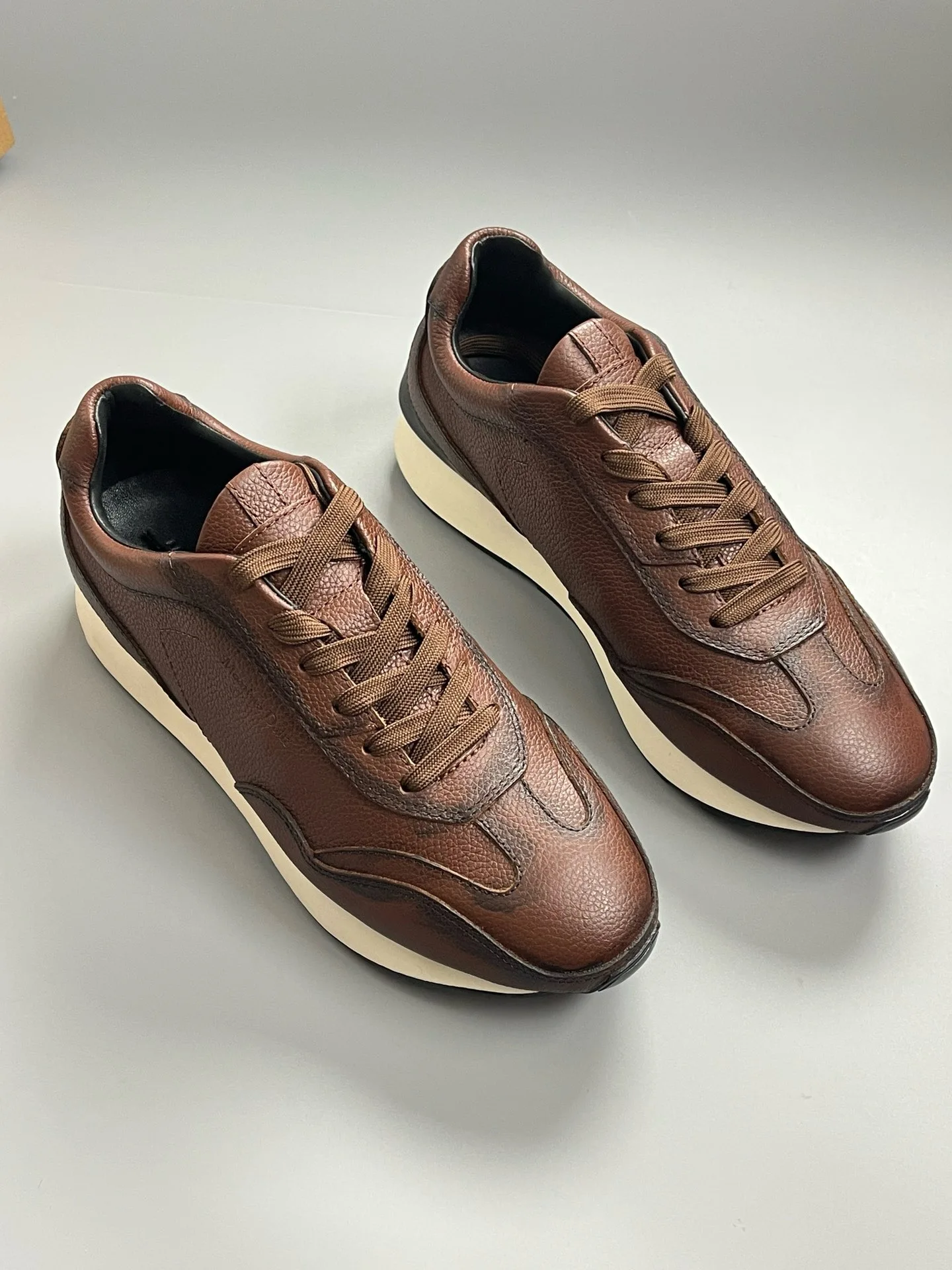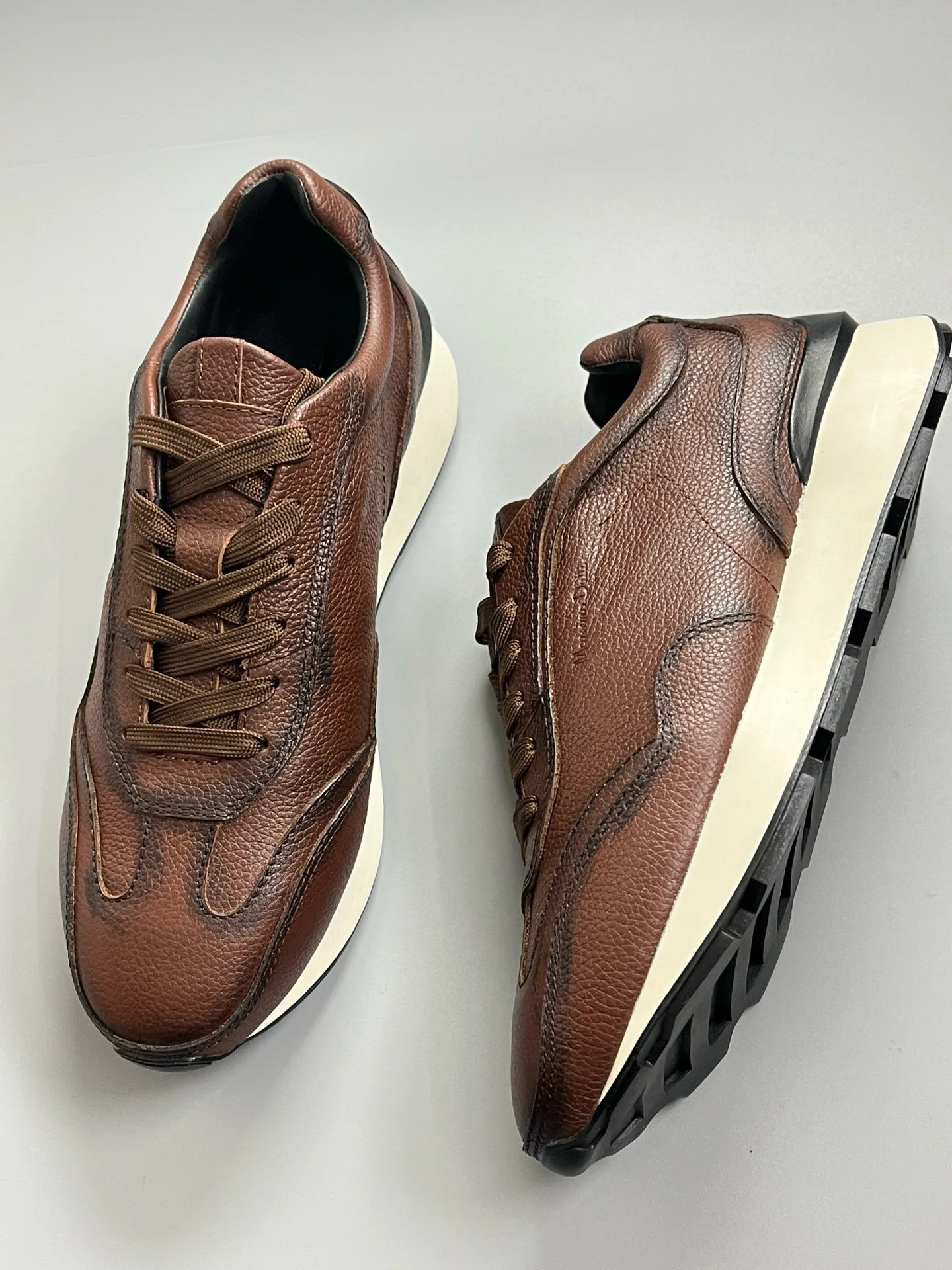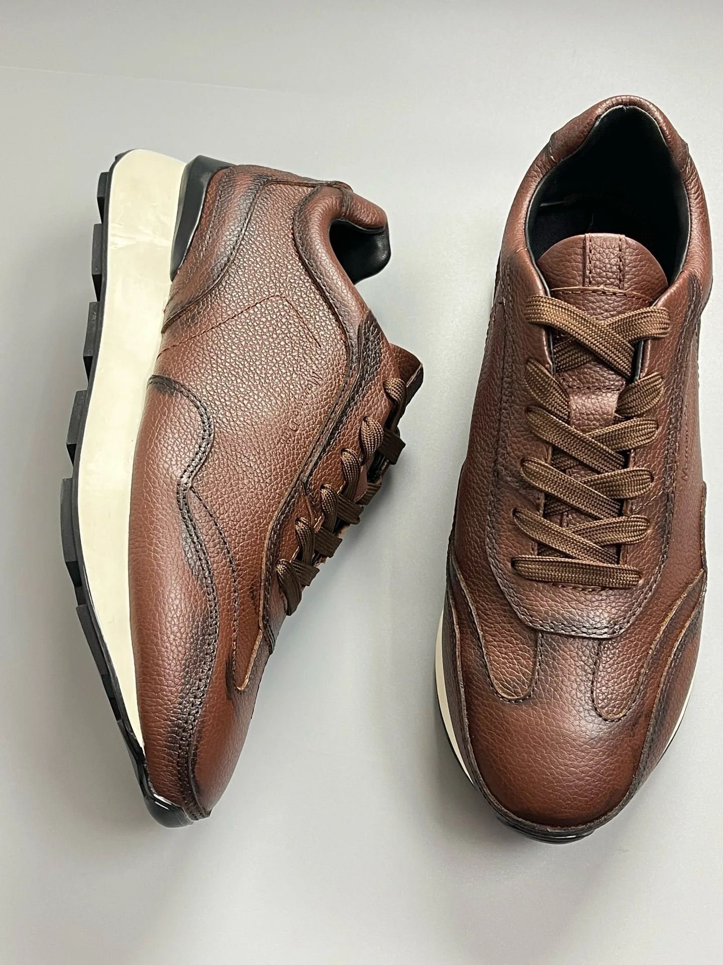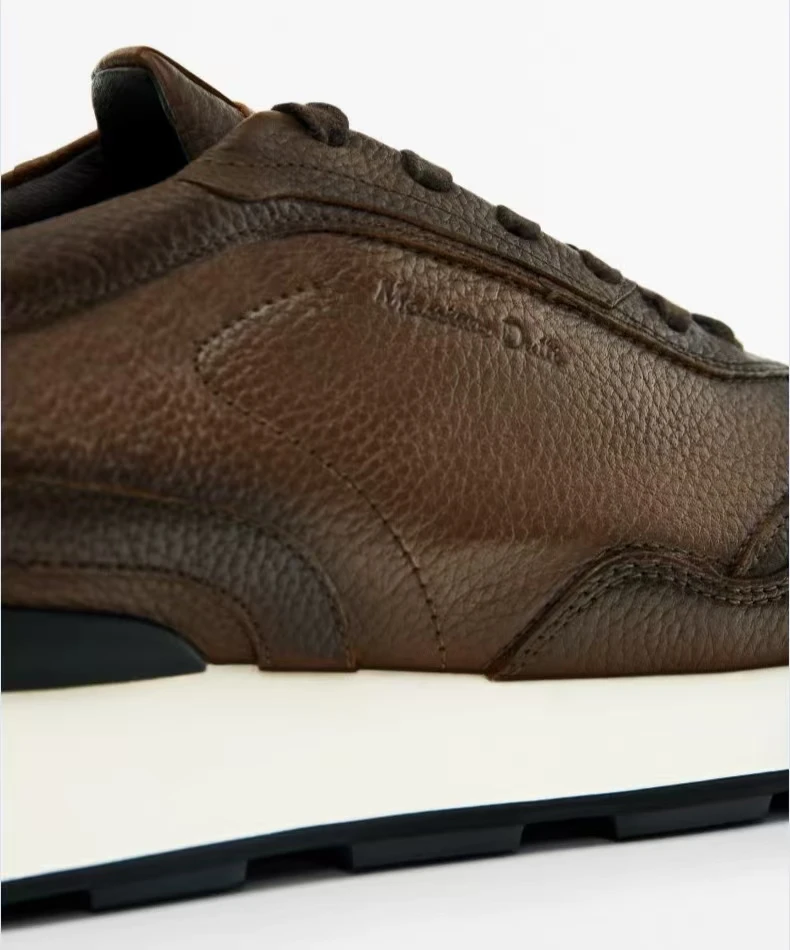 Fashion Sneakers For Men Retro Genuine Leather Lace Up Thick Soled Sports Shoes