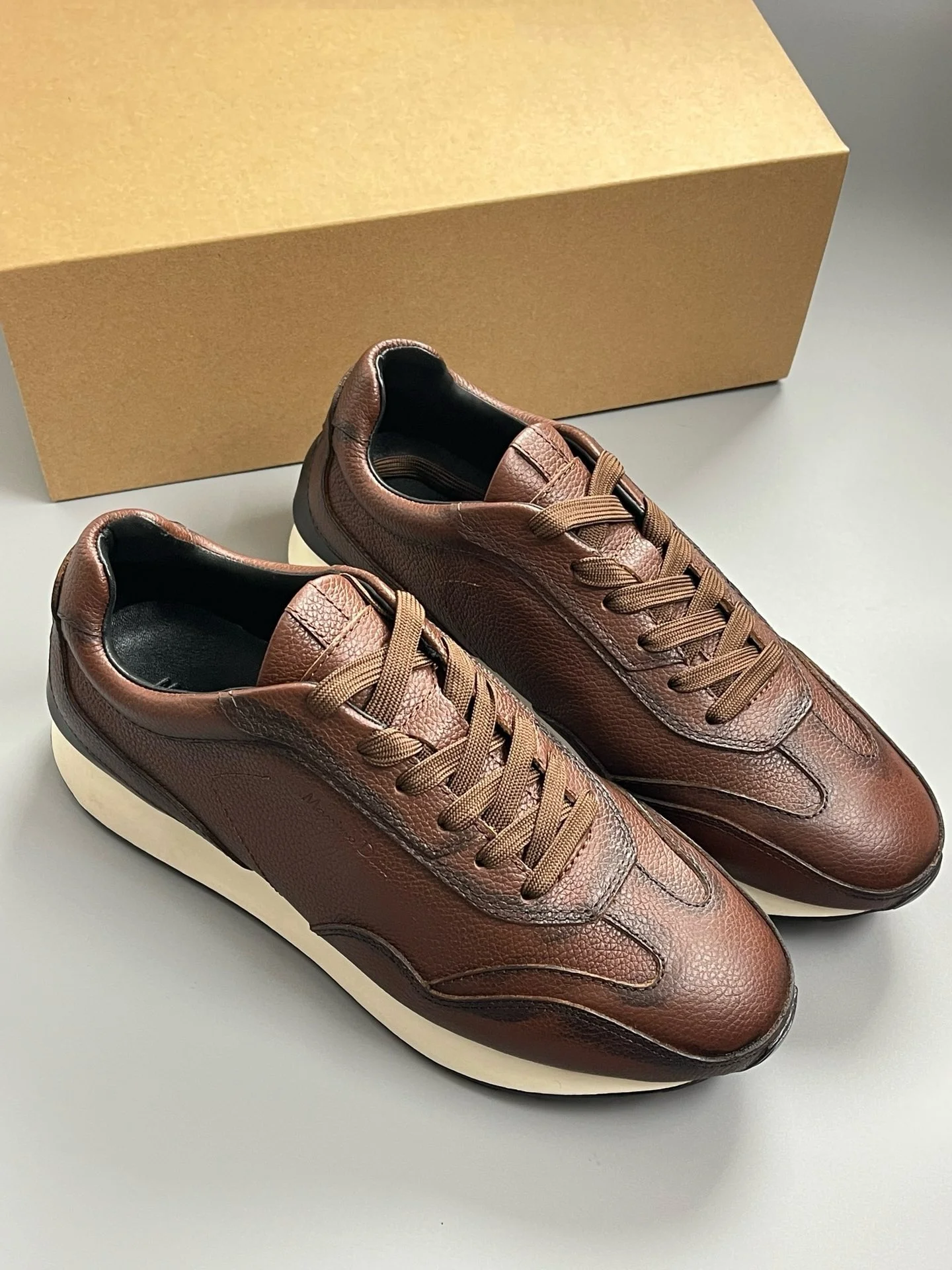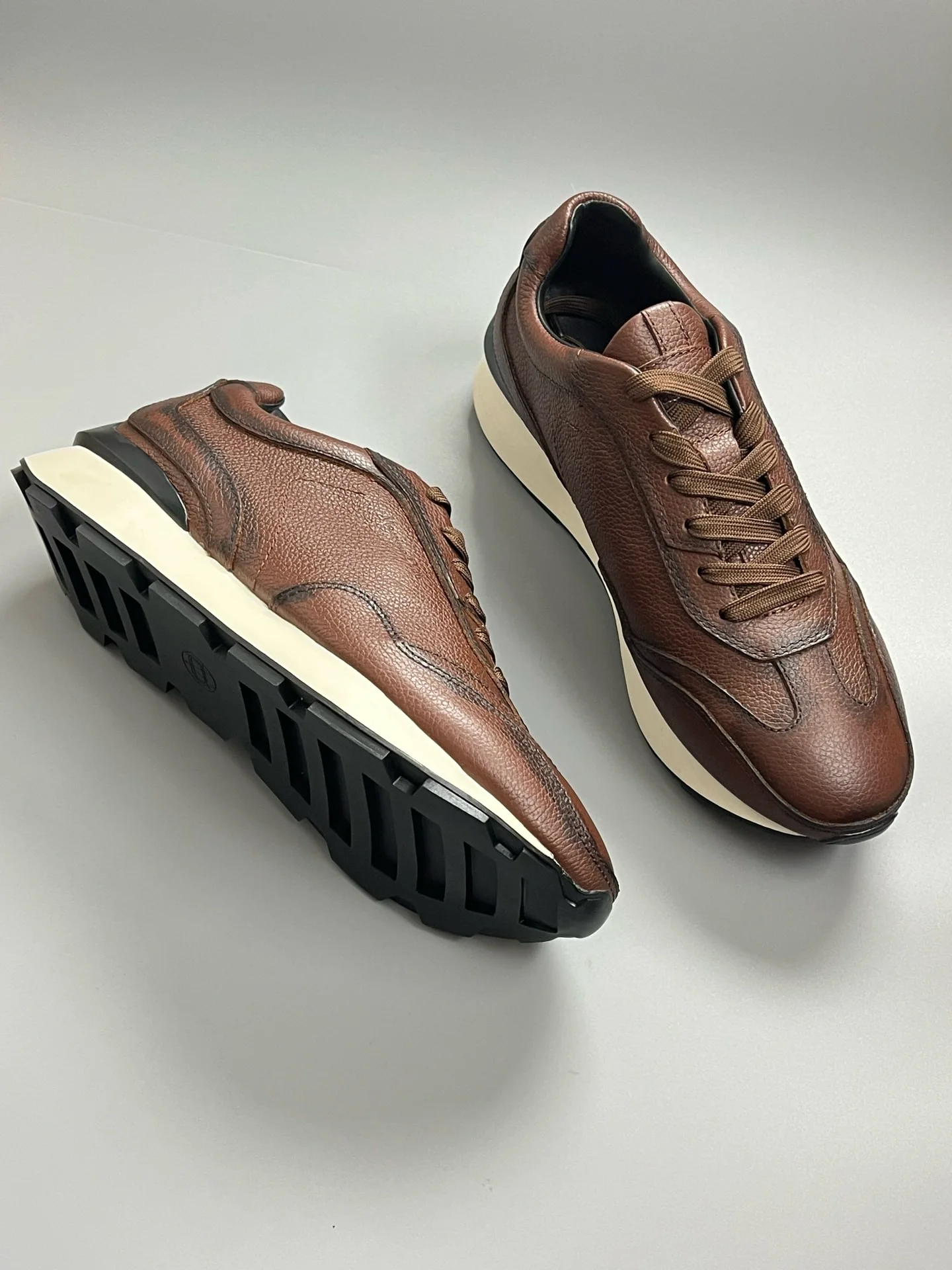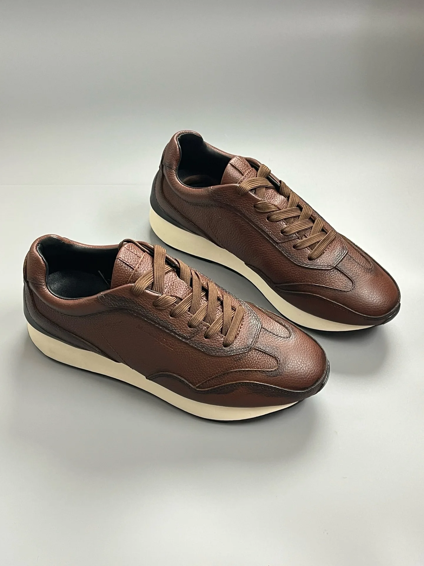 Fashion Sneakers For Men Retro Genuine Leather Lace Up Thick Soled Sports Shoes