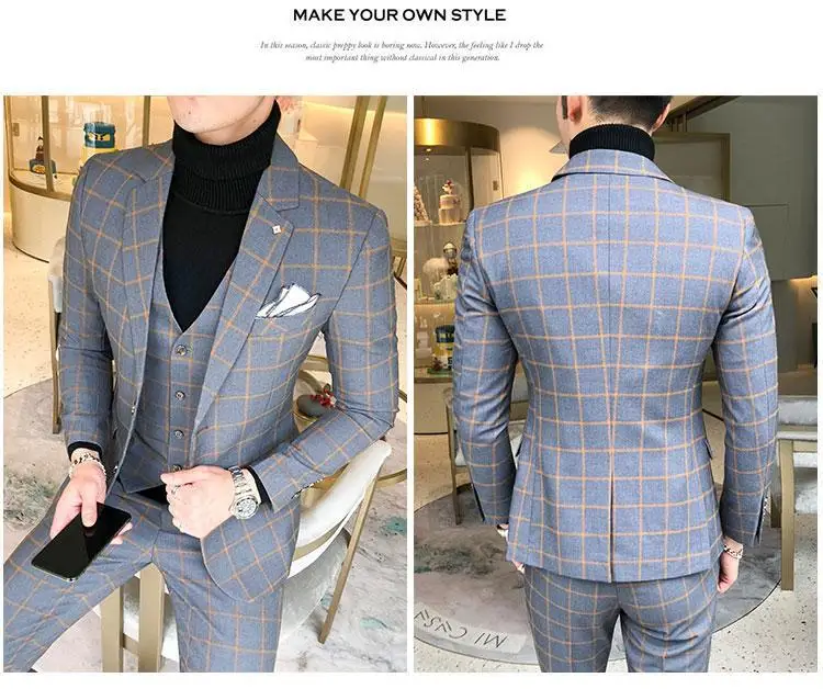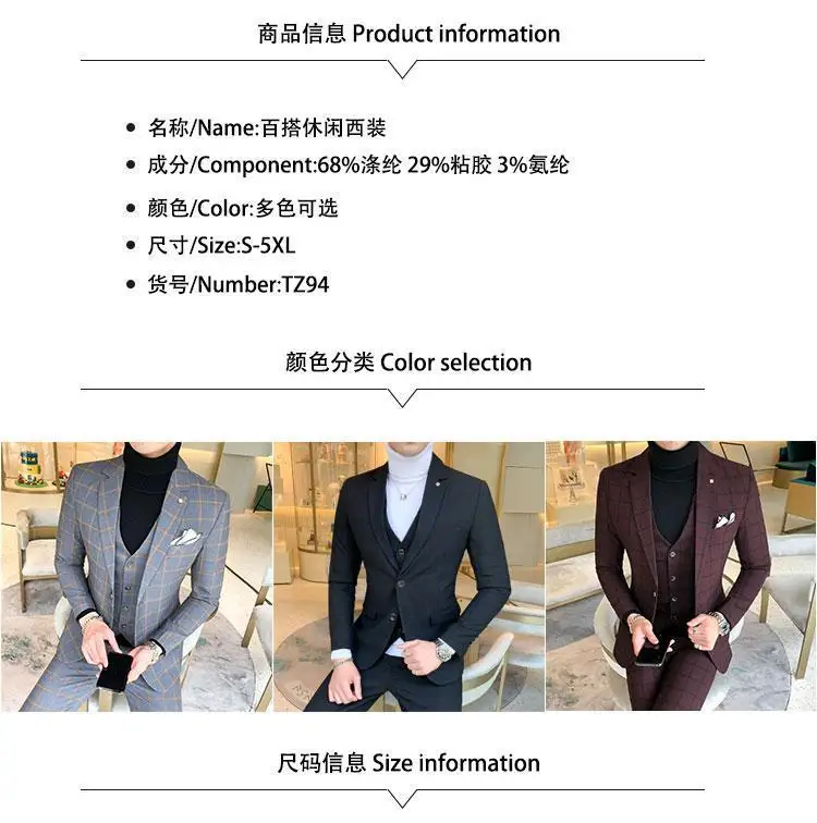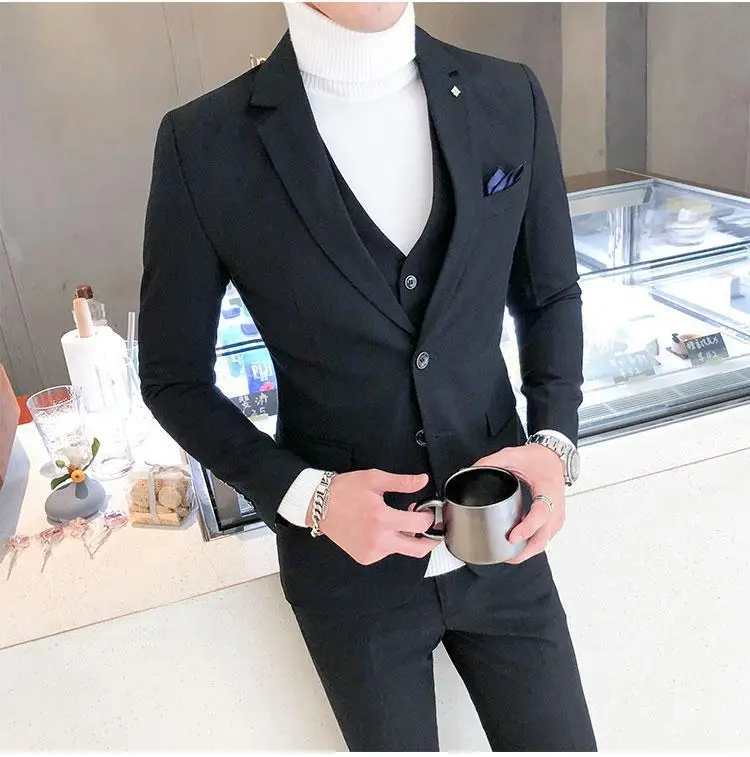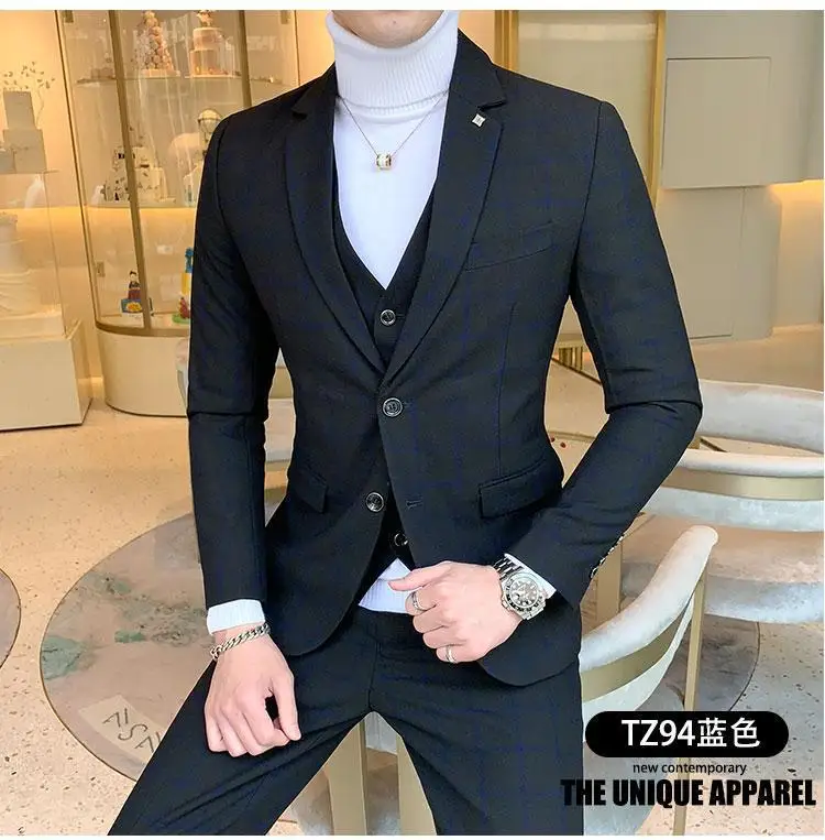西服套装三件套2020新款韩版修身正装结婚礼服英伦职业小西装