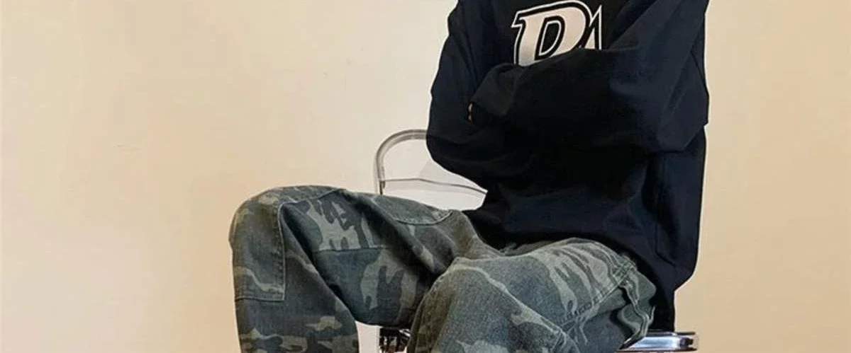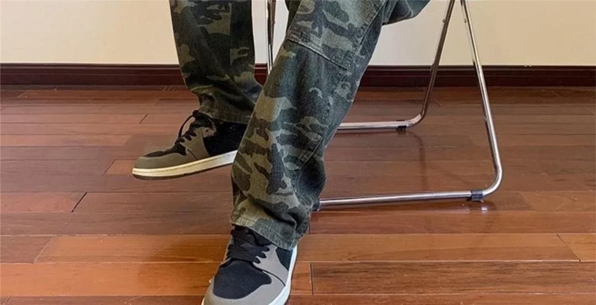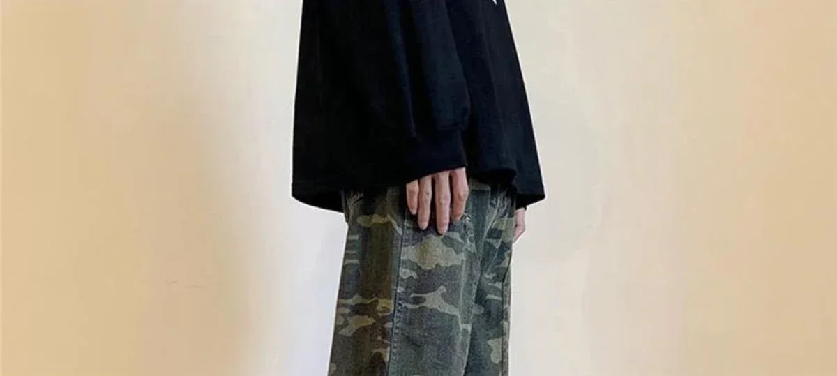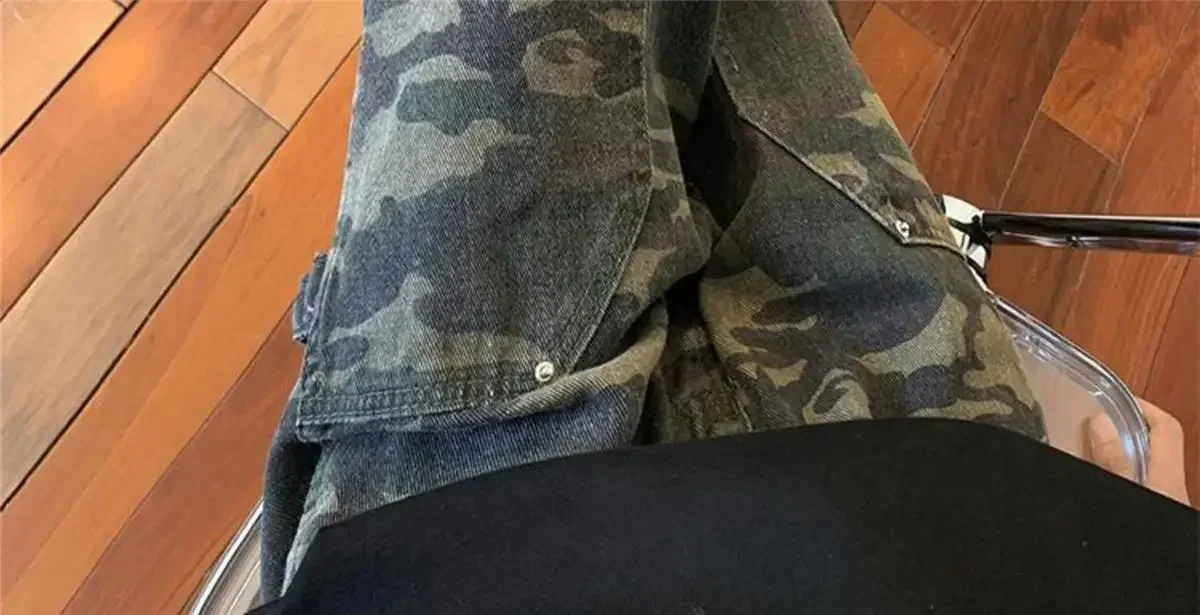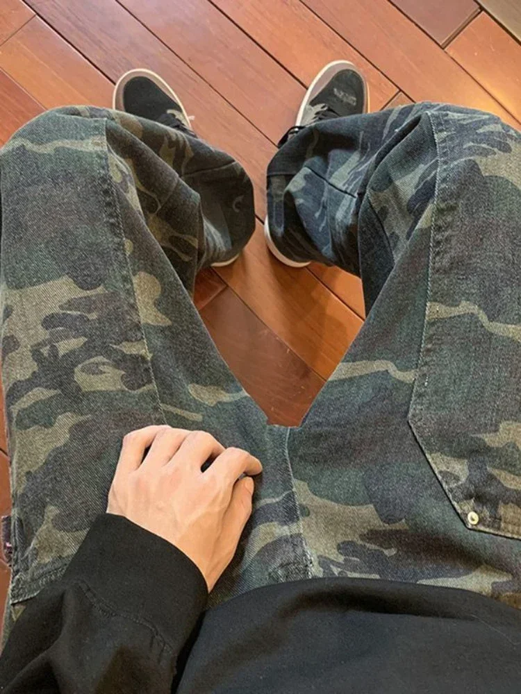 Jeans for Men Spliced Cargo Male Cowboy Pants Camouflage Trousers Punk Straight