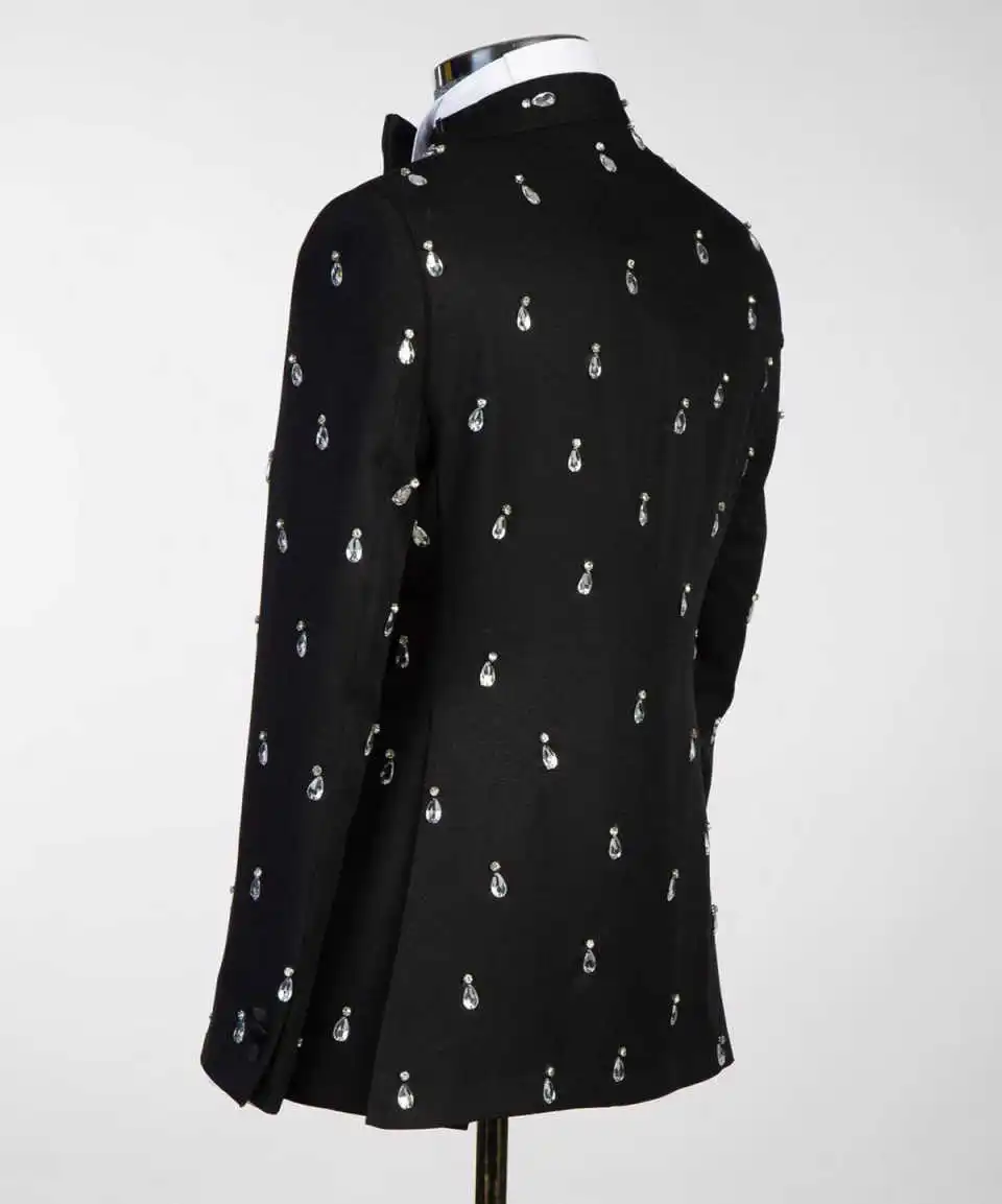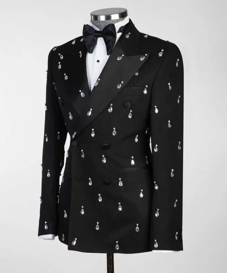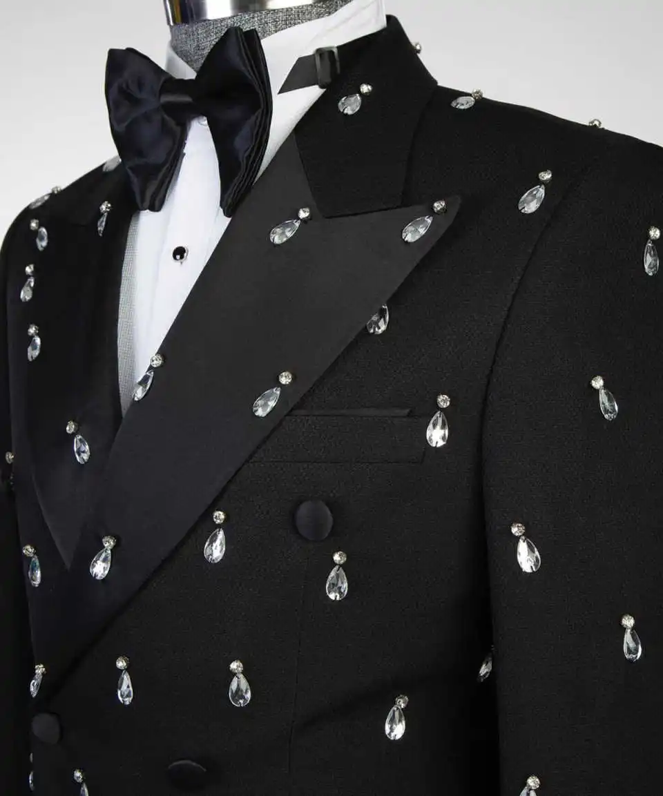 Large Crystal Groom Wedding Tuxedos2 Pieces Slim Fit Black Double Breasted Mens