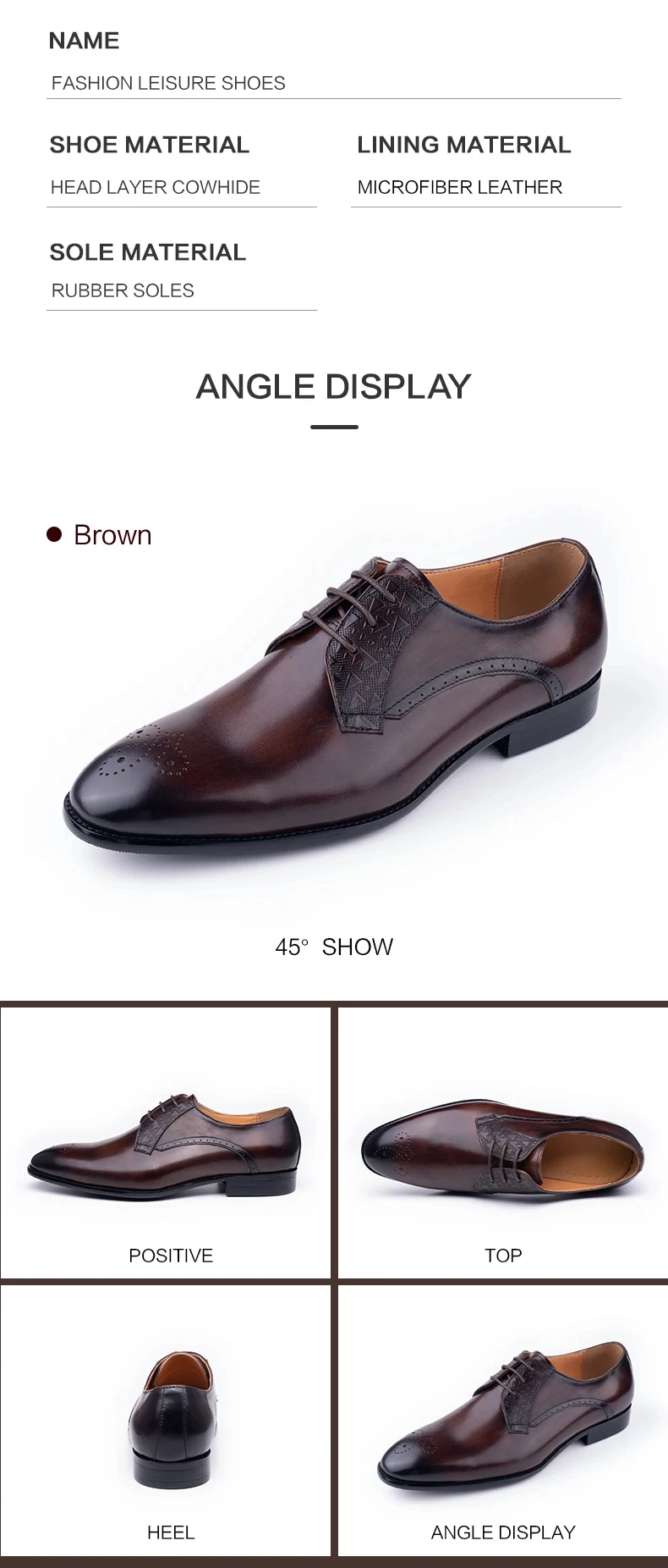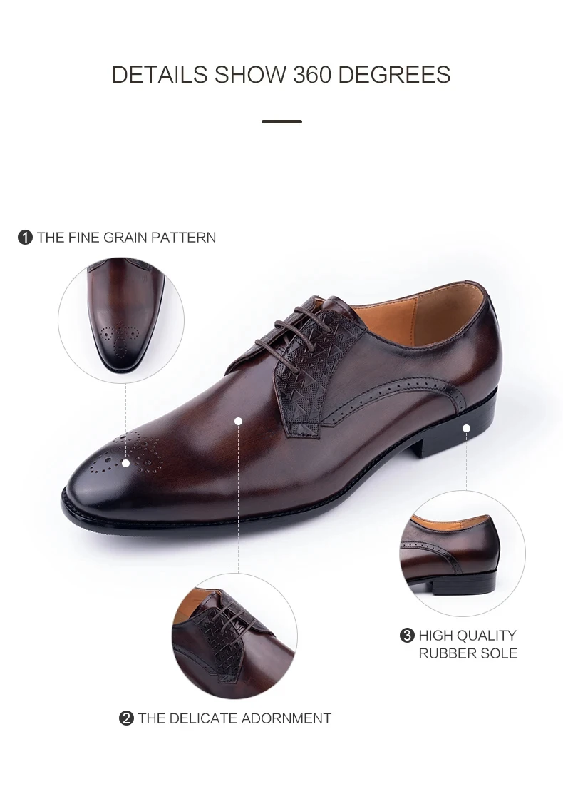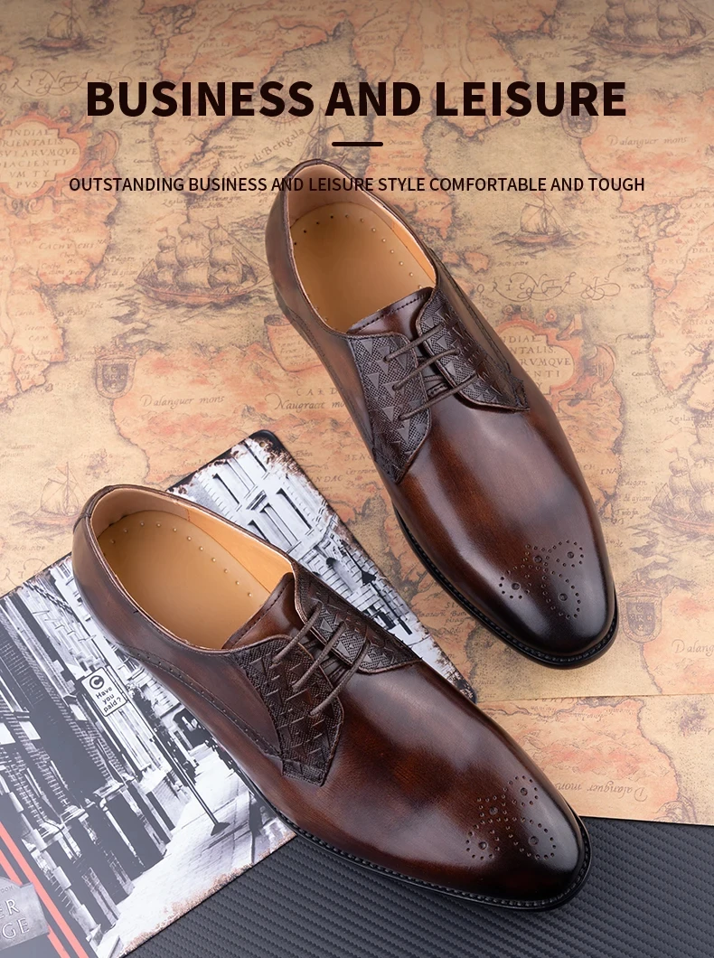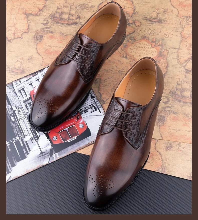 Luxury Mens Leather Shoes Fashions Genuine Leather Elegant Dress Derby Formal Shoe Casual Business Party Leather Shoes CoffeePackaging: brand new