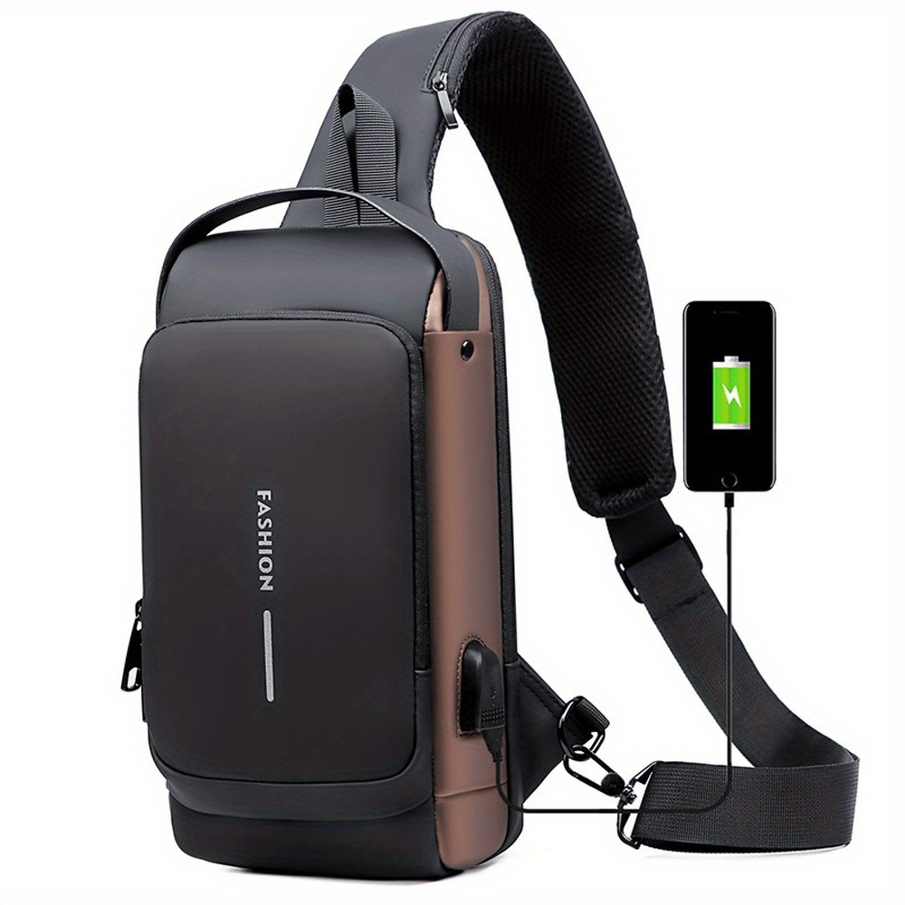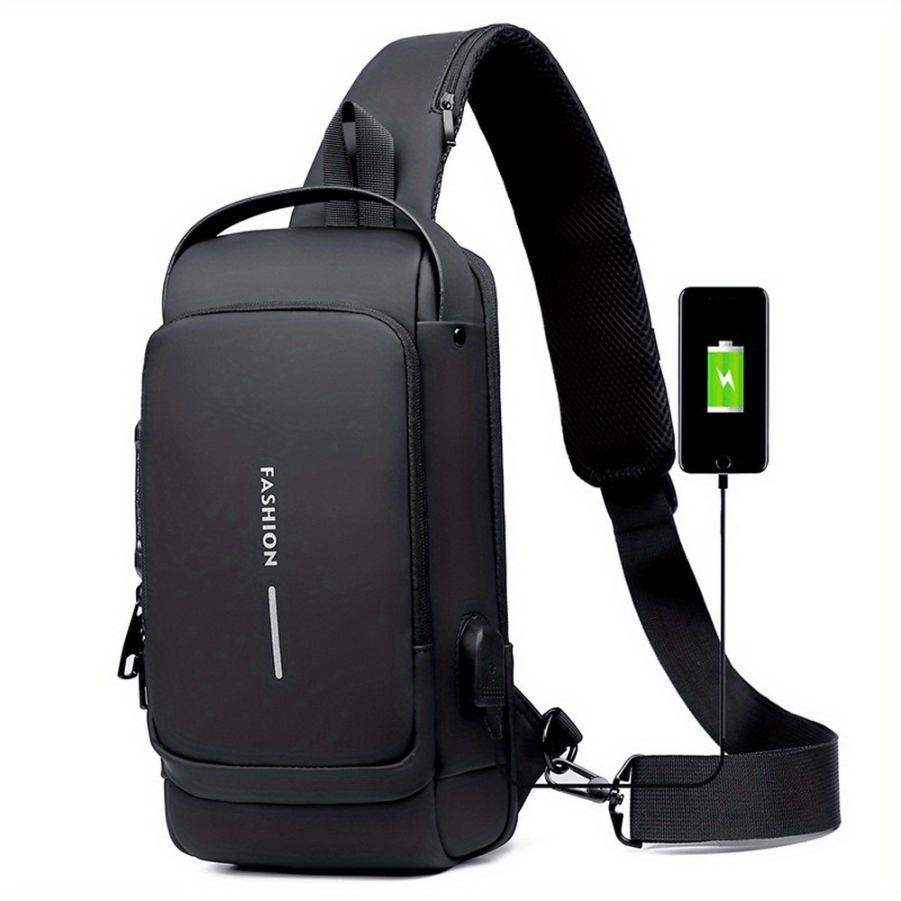 Men Anti Theft Chest Bag Shoulder Bags USB Charging Crossbody Package School Sho