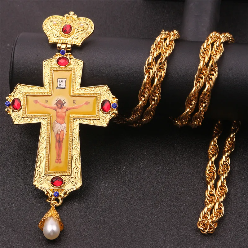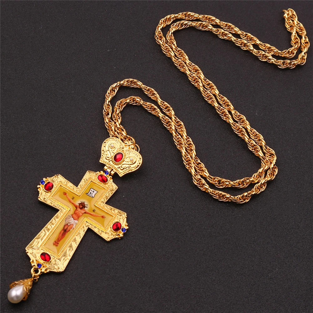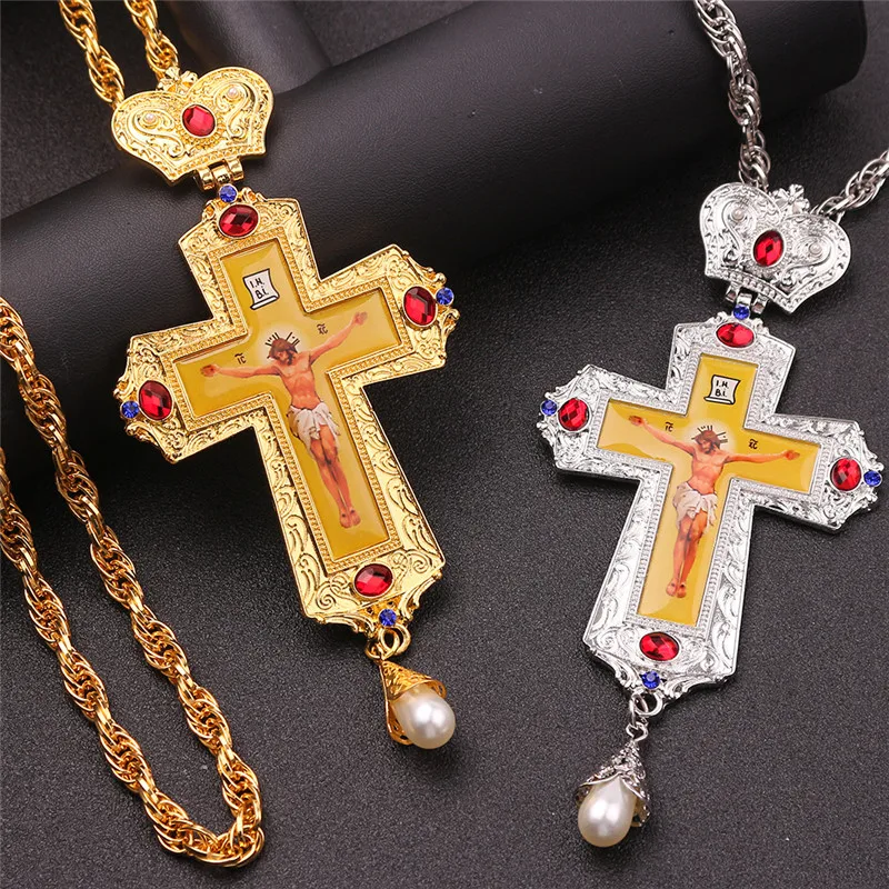Men's Necklace Christian Orthodox Crucifix Jesus Russian Cross Prayer Big Pendan