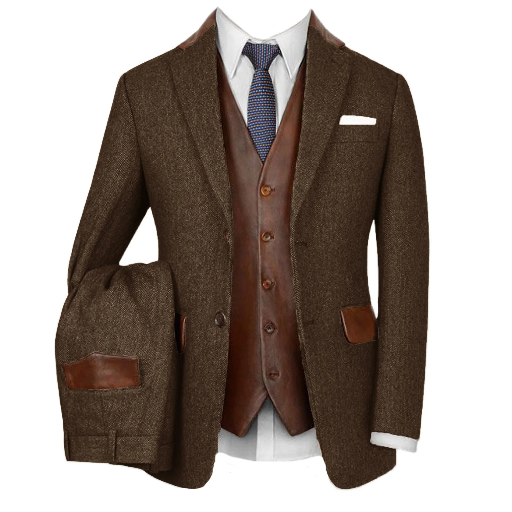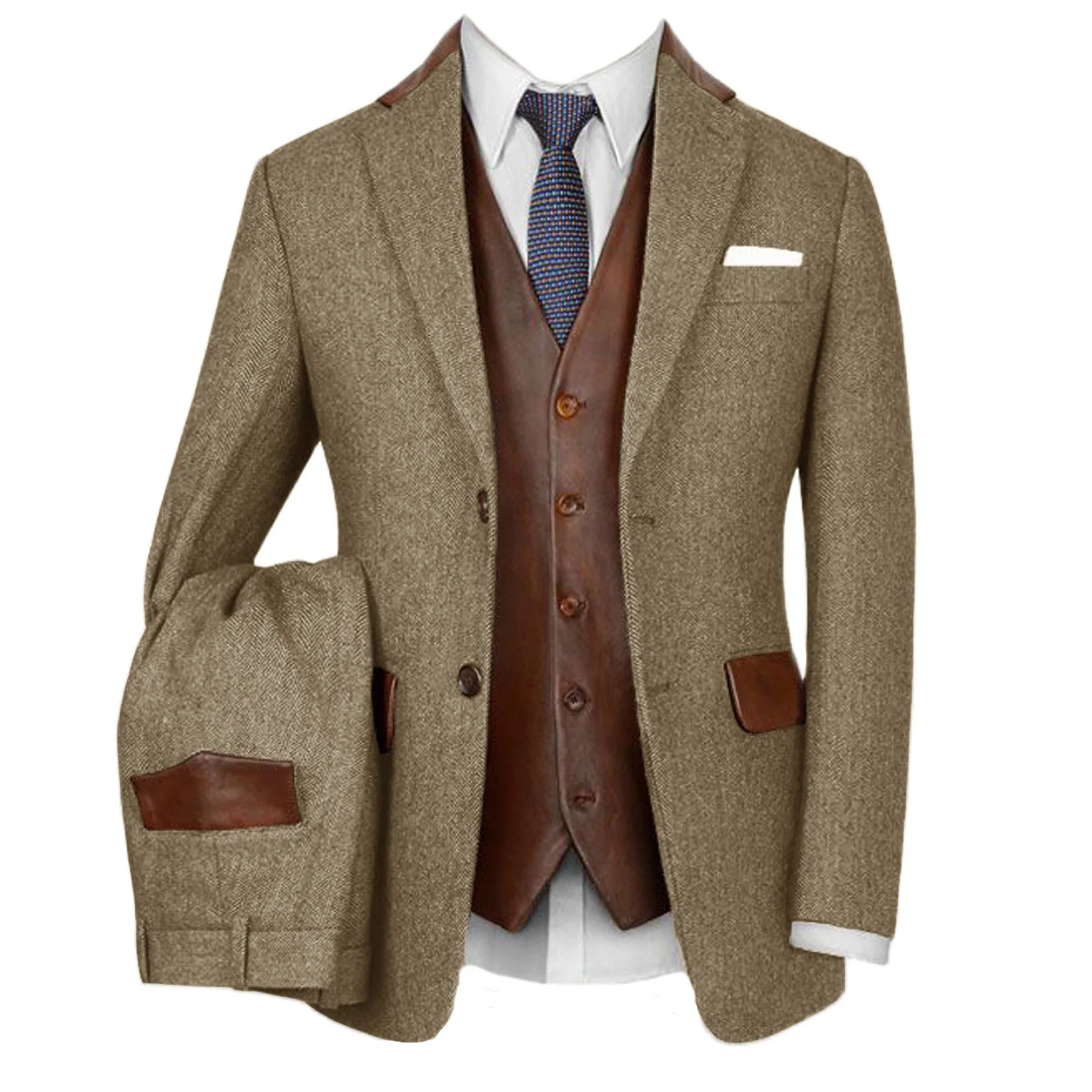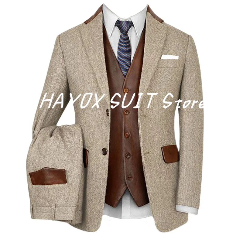 Men's Suits Retro Light Beige Tweed Slim Fit Single-breasted Suit Two-piece Suit