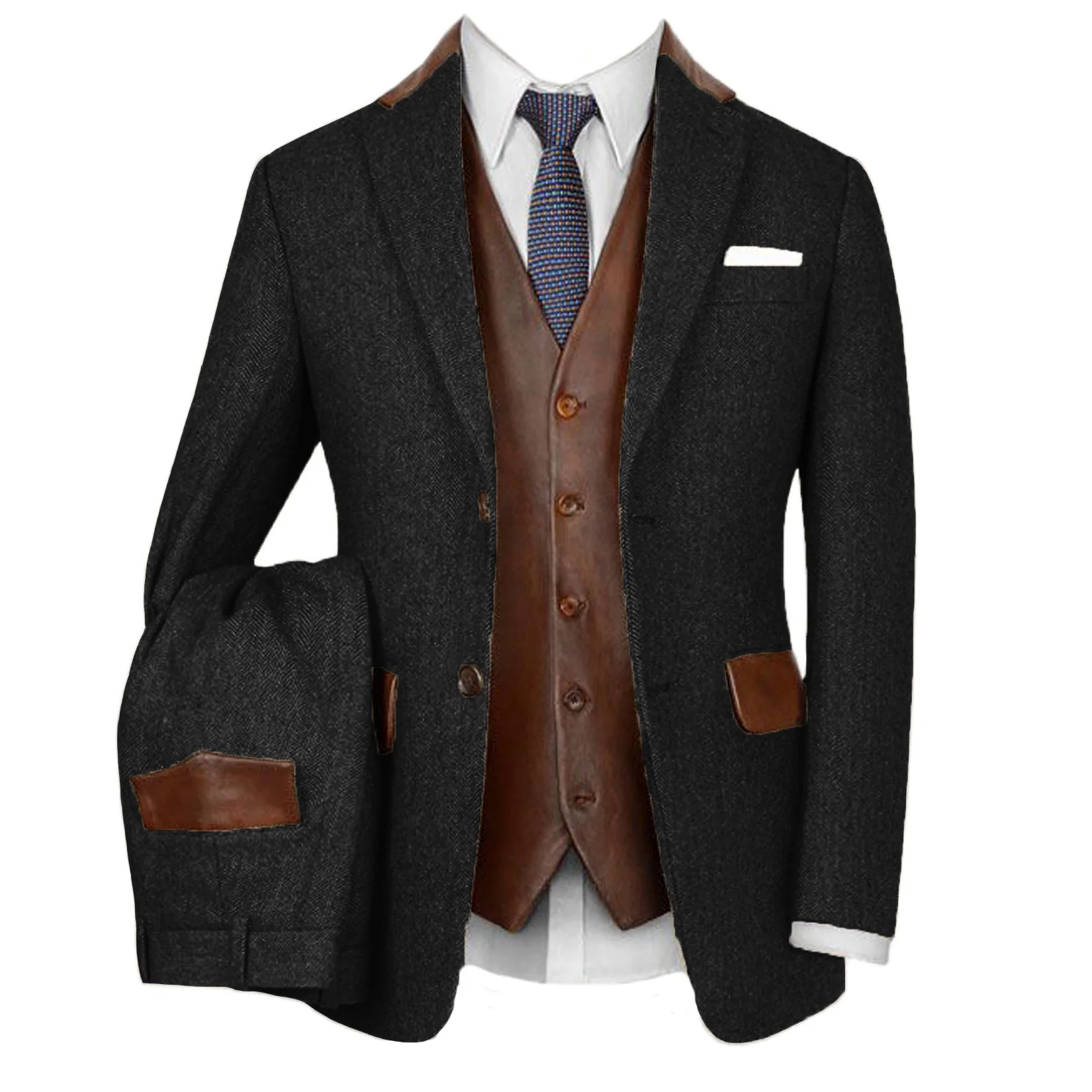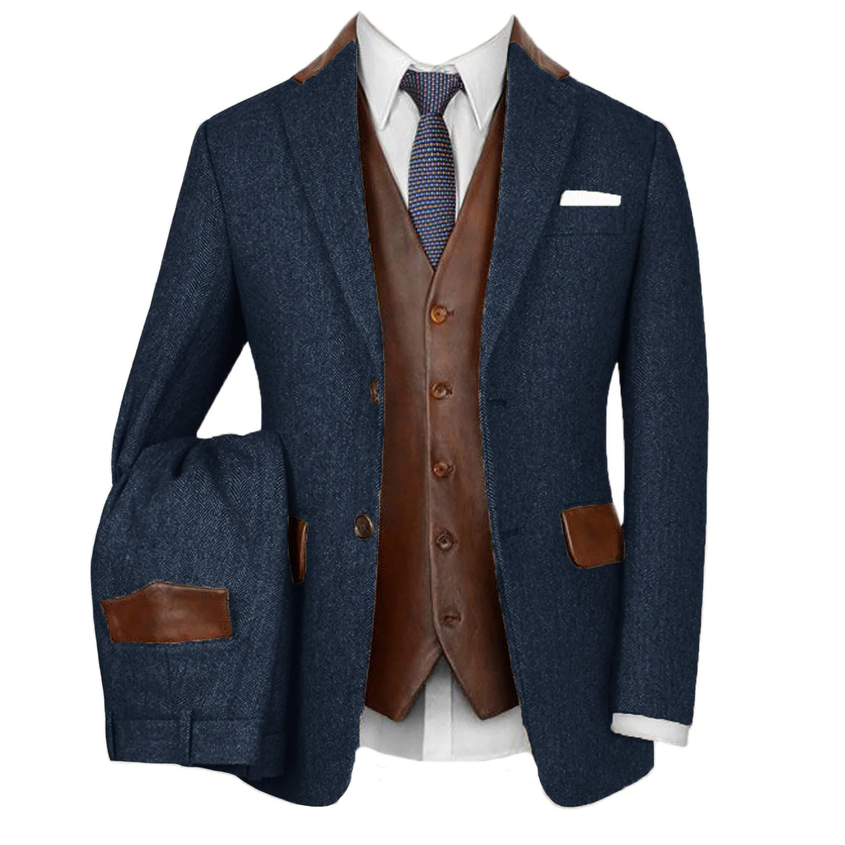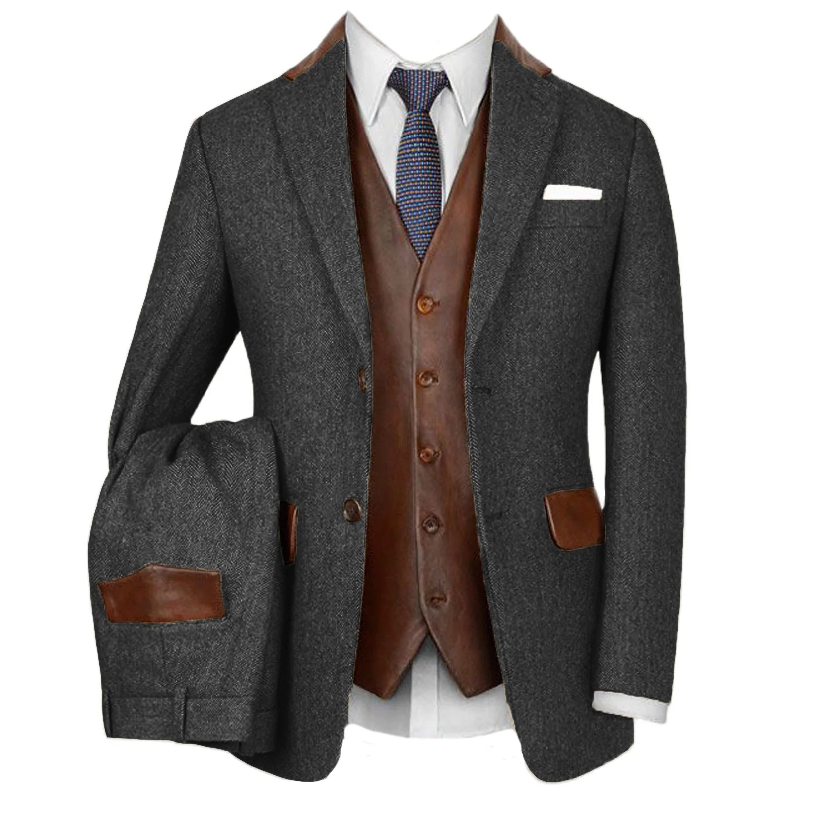 Men's Suits Retro Light Beige Tweed Slim Fit Single-breasted Suit Two-piece Suit