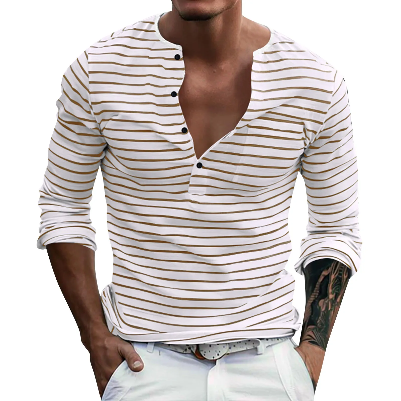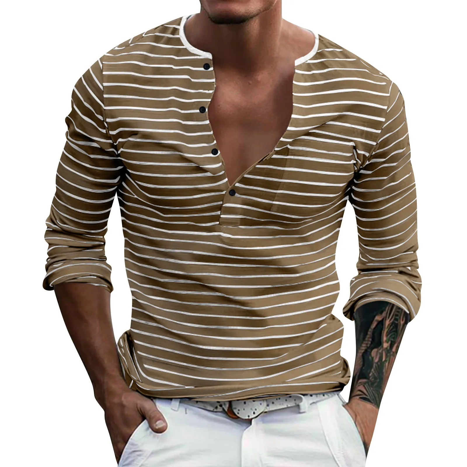 Men'S Versatile Basic Shirts Causal Long Sleeved Henry'S Shirt Autumn New Daily