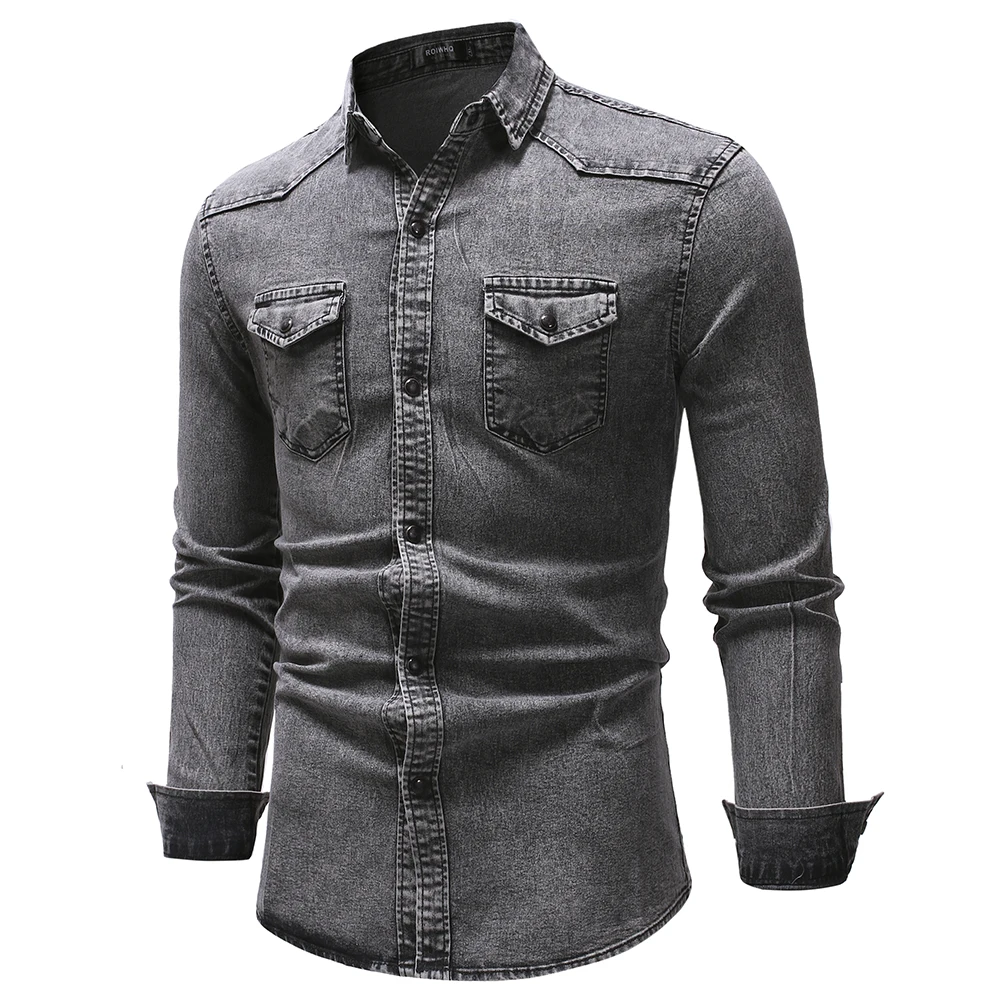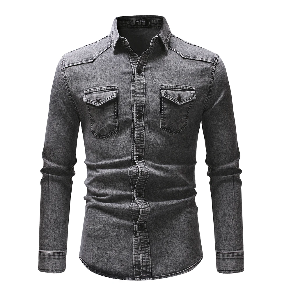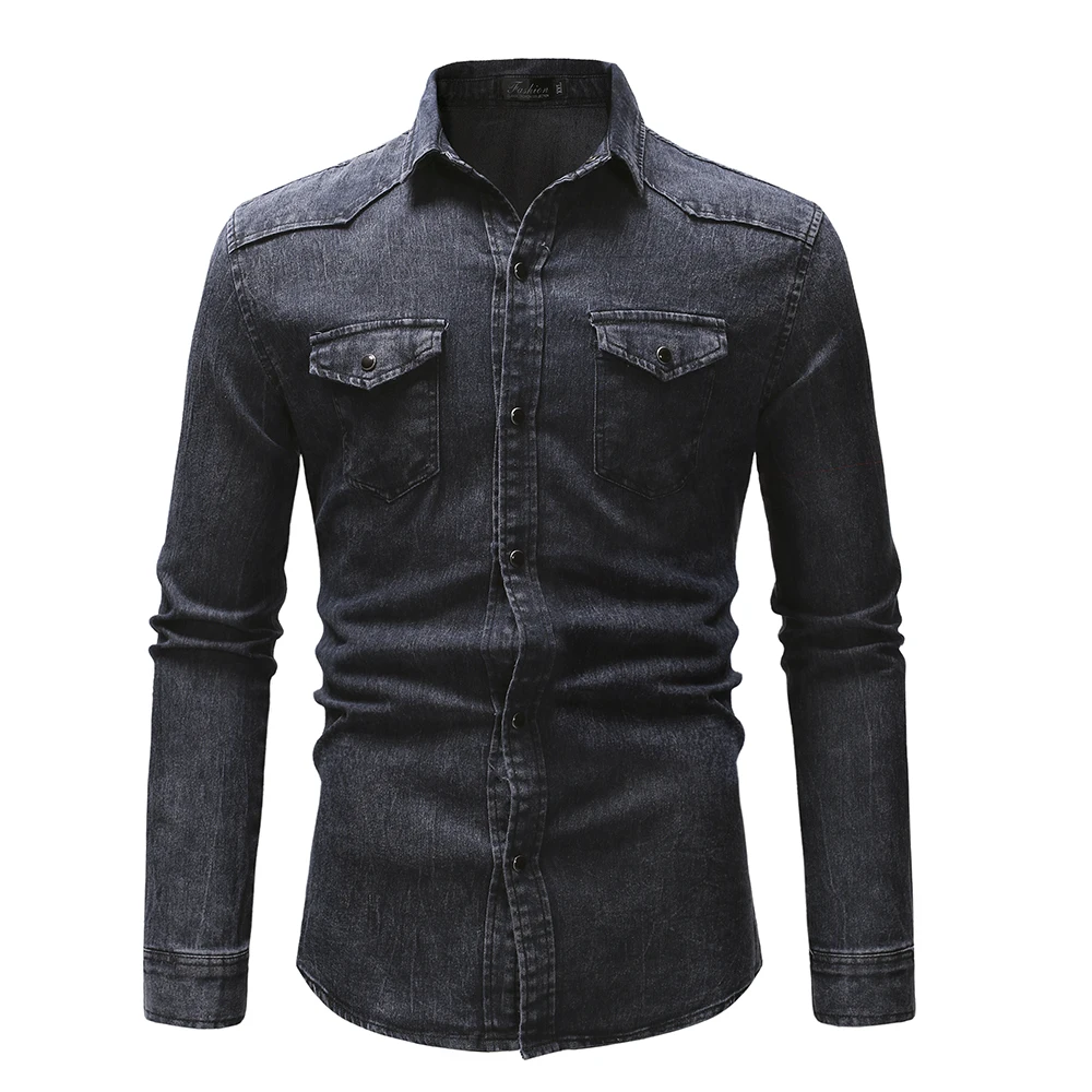 Men Shirts Top Solid Tops Simple Slim Fit Shirt Turn Down Collar Full Sleeve Sin