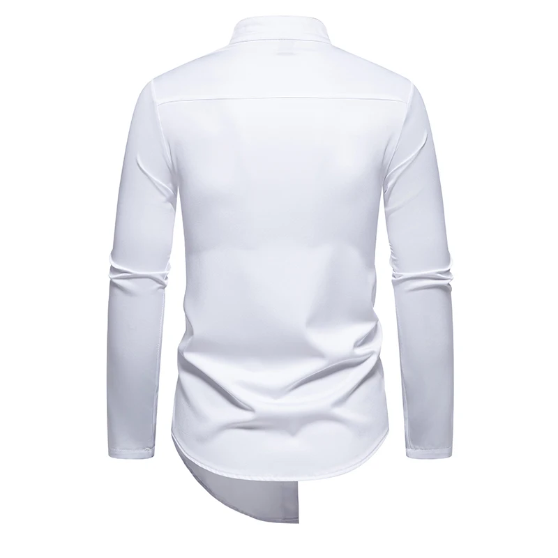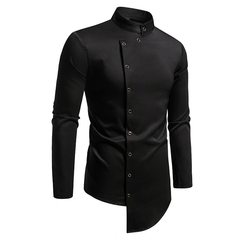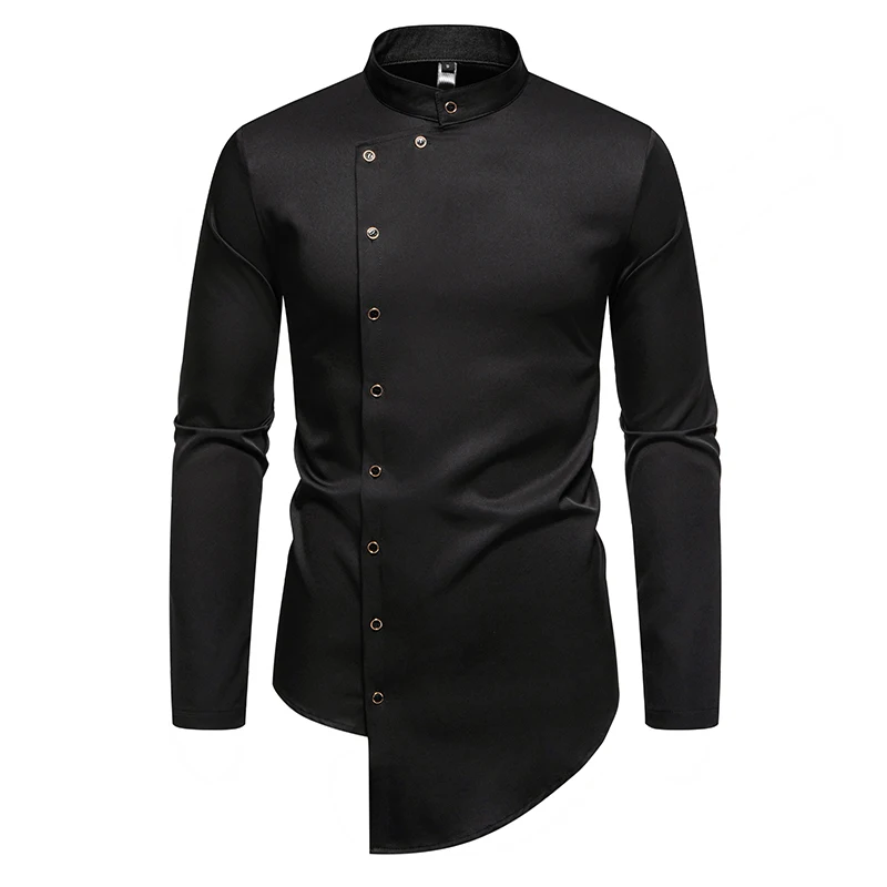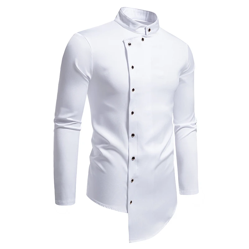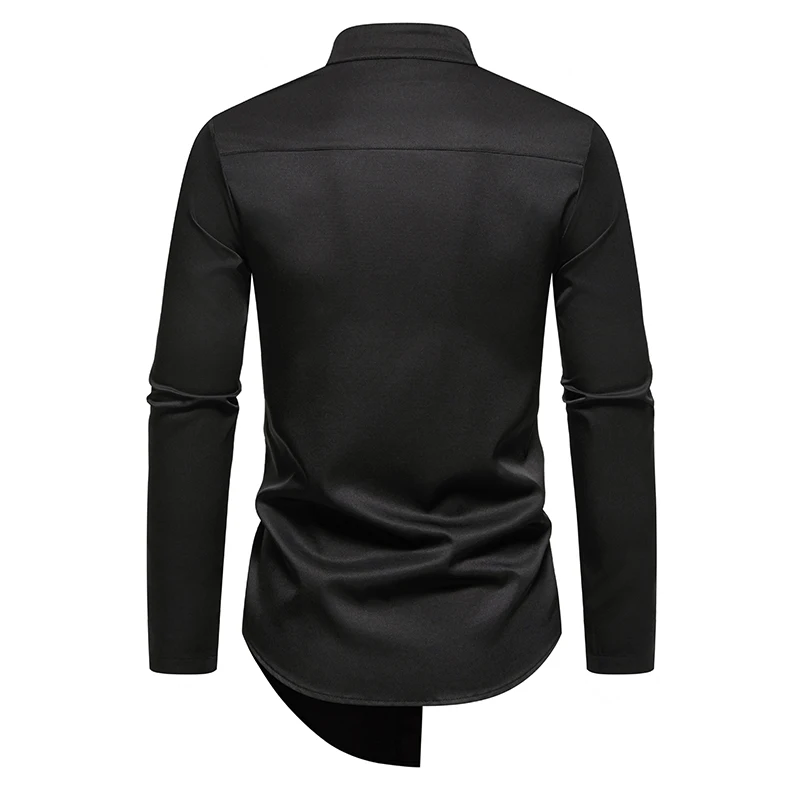 Mens Dress Shirts Vintage Personality Irregular Crop Long Sleeve Business Stand
