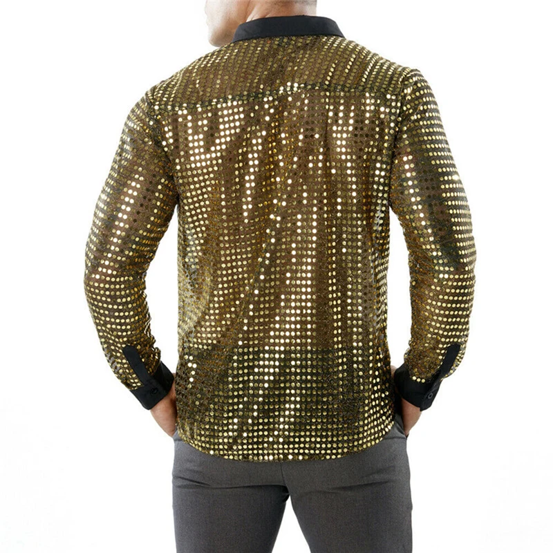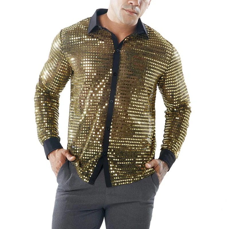Men's Spring Autumn Sequins Shirt Long Sleeve Turn Down Collar Button Dot Shirt