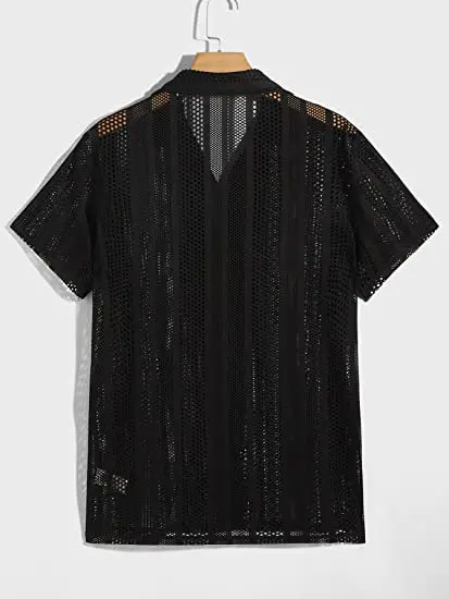 Mens Shirts Street Casual Buttons Knitted Short Sleeve Shirts Tops for Men