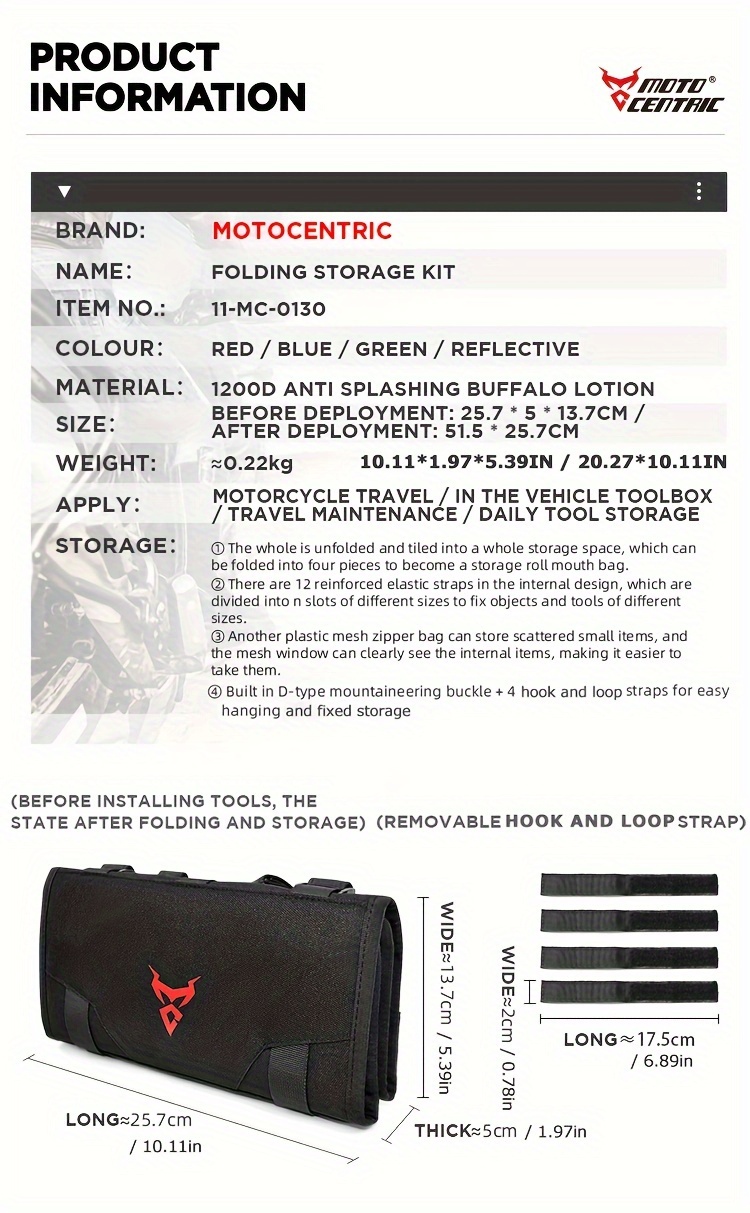 MOTOCENTRIC Motorcycle Side Bag Riding Tool Folding Storage Kit Motorcycle Porta