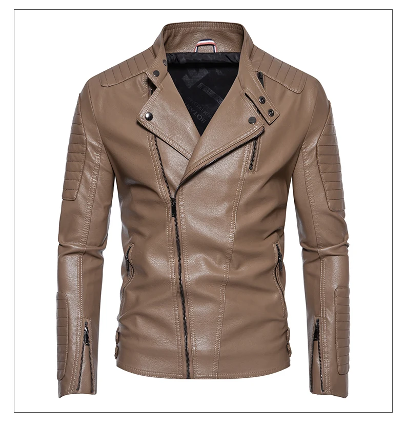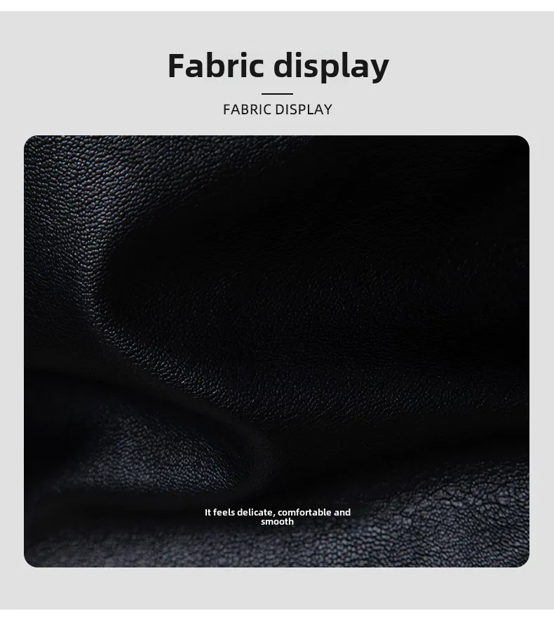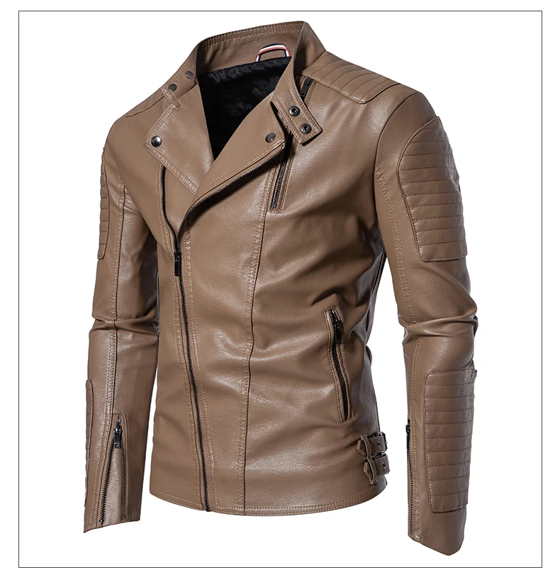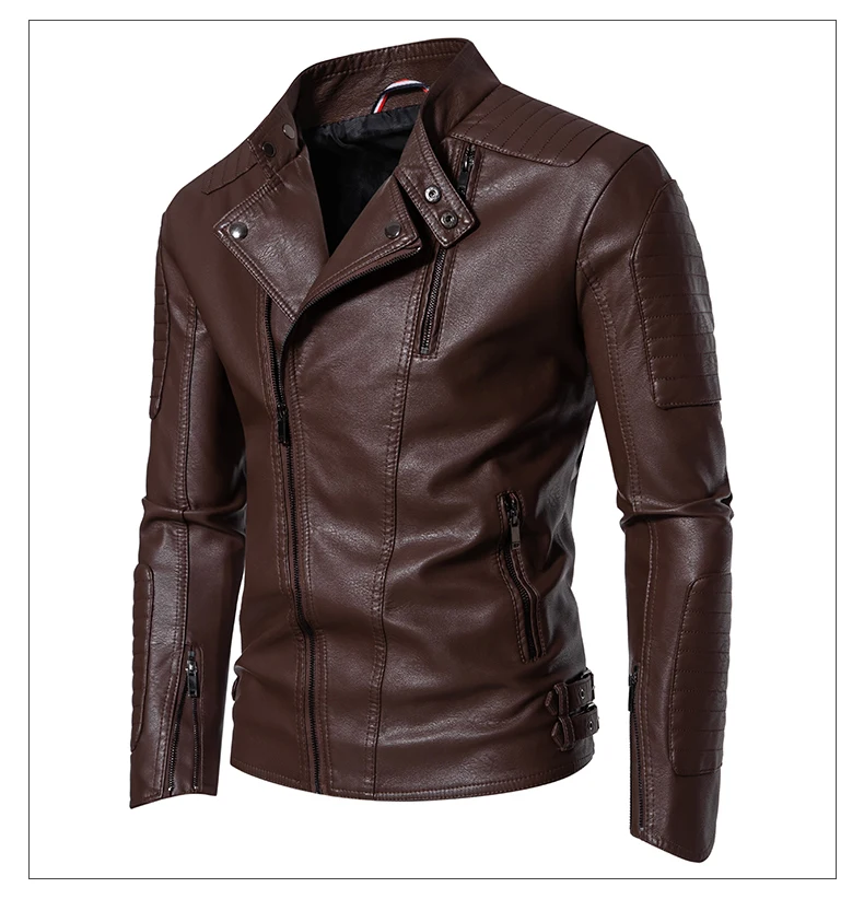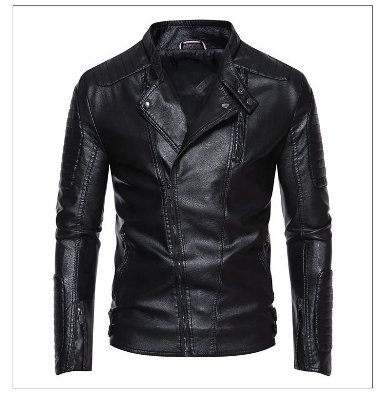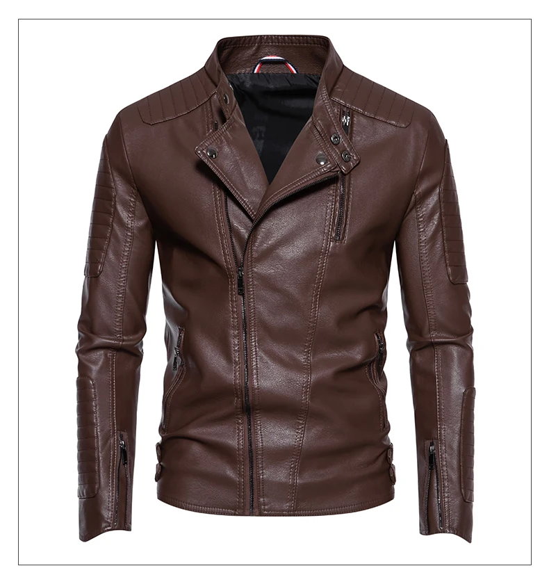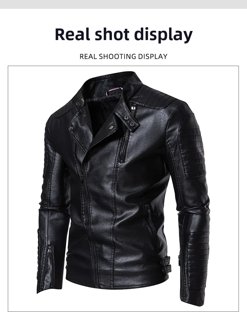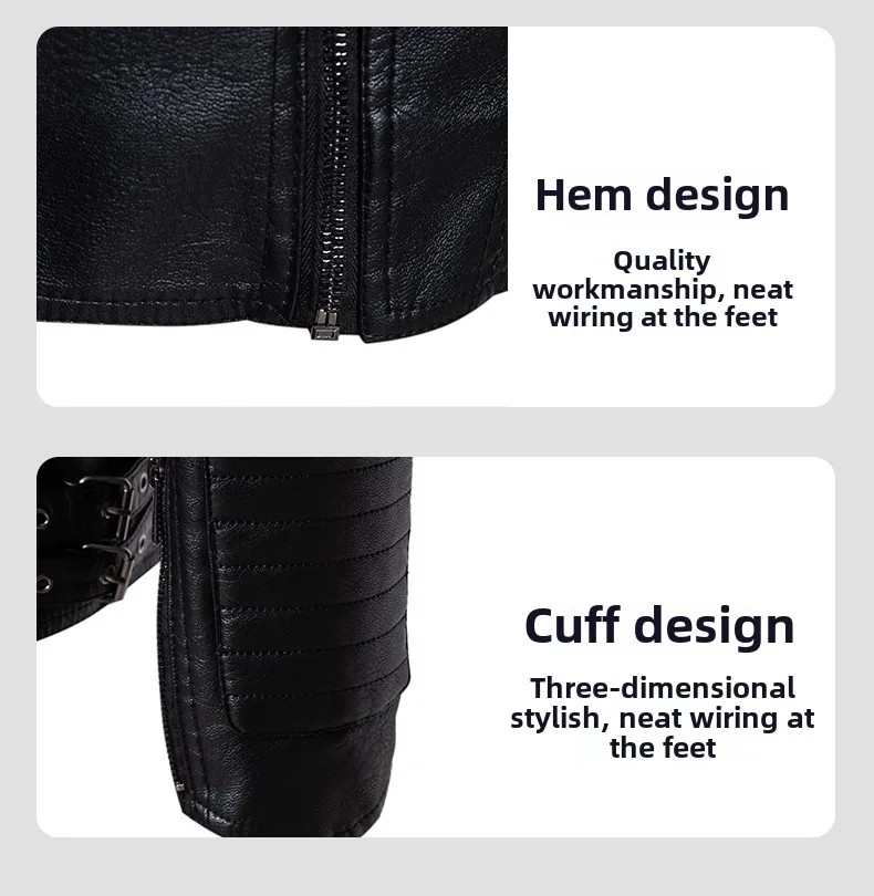 The sleek design of this leather jacket transitions effortlessly from casual outings to business settings, blending functionality with style.