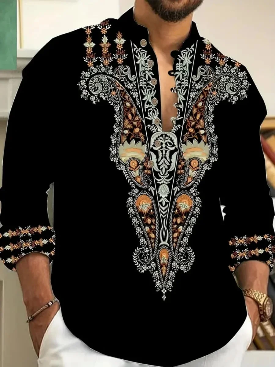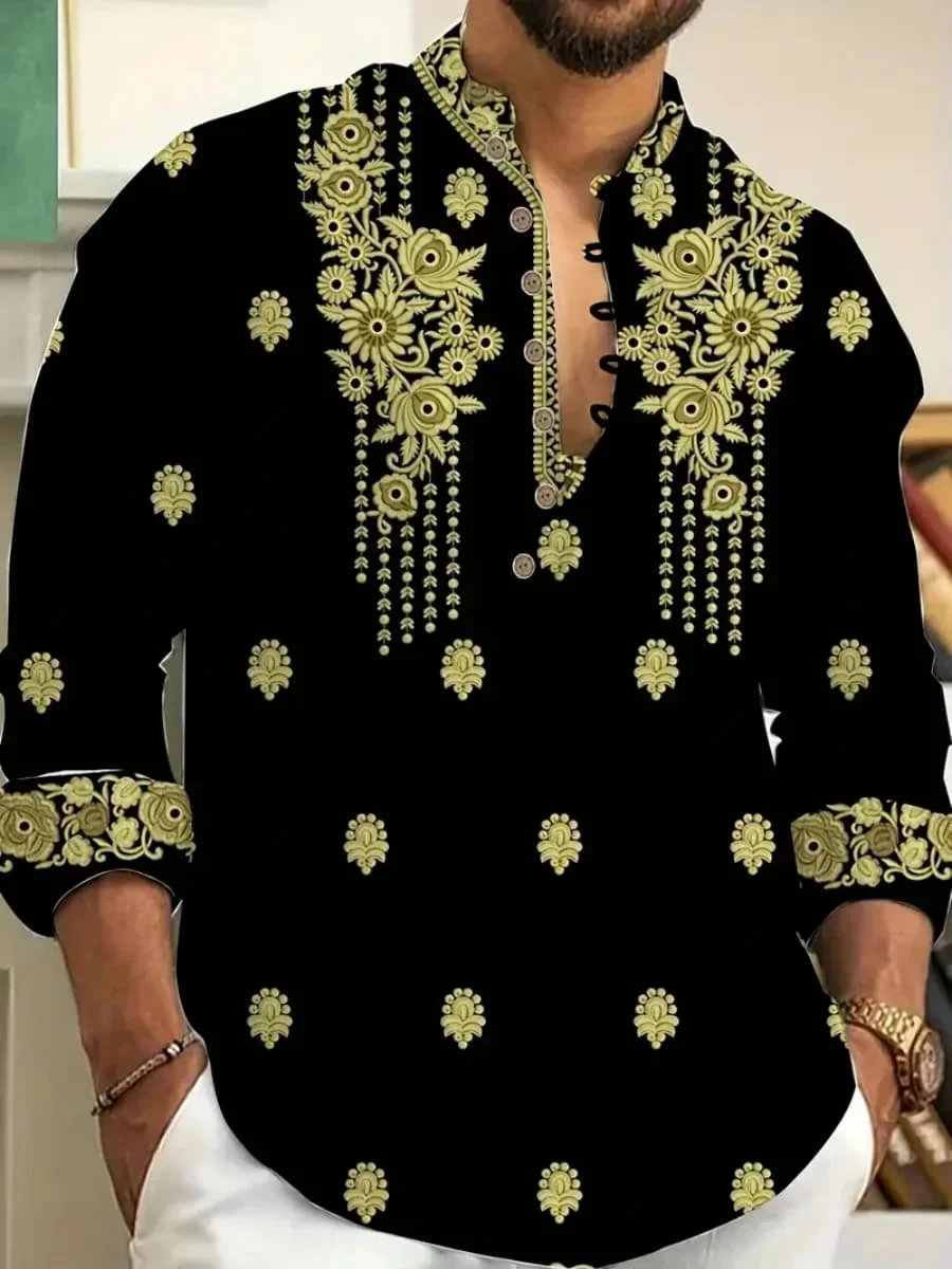 New men's button-down shirts with trendy patterns, slim fit, comfortable and sof
