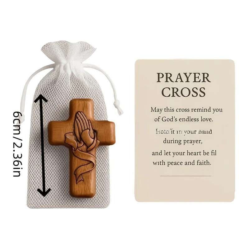 Resin 3D Pocket Prayer Cross with Holy Water Droplet Design & Prayer Card - Port