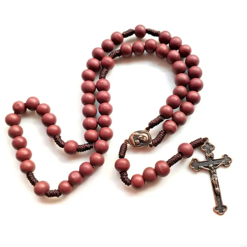 Round Rosary Beads Necklaces Christian Prayer Pendant Jesus Necklaces Religious