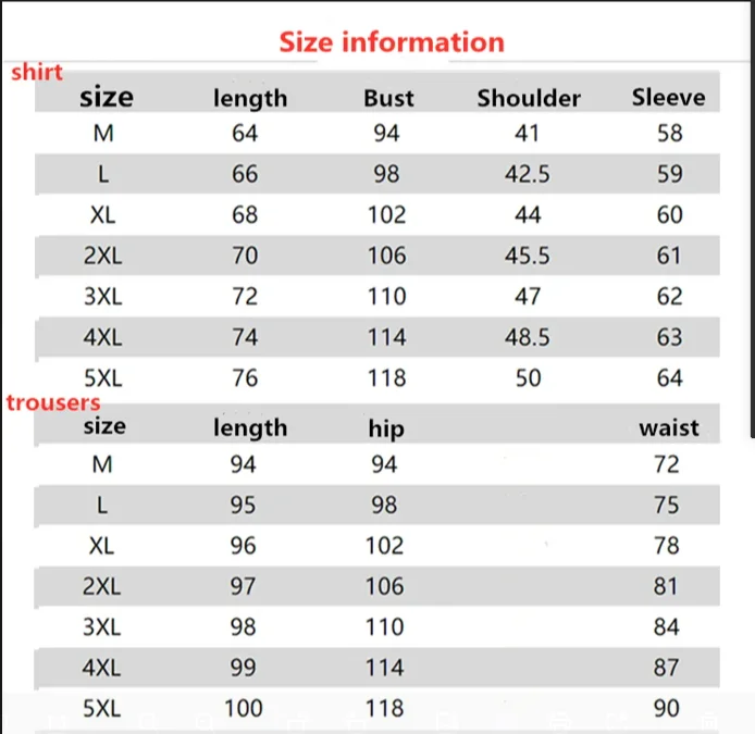size_info: {"sizeInfoList":[{"length":{"cm":"94","inch":"37.01"},"size":"M","vid":-1},{"length":{"cm":"98","inch":"38.58"},"size":"L","vid":-2},{"length":{"cm":"102","inch":"40.16"},"size":"XL","vid":-3},{"length":{"cm":"106","inch":"41.73"},"size":"XXL","vid":-4},{"length":{"cm":"110","inch":"43.31"},"size":"XXXL","vid":-5},{"length":{"cm":"114","inch":"44.88"},"size":"4XL","vid":-6},{"length":{"cm":"118","inch":"46.46"},"size":"5XL","vid":-7}]}