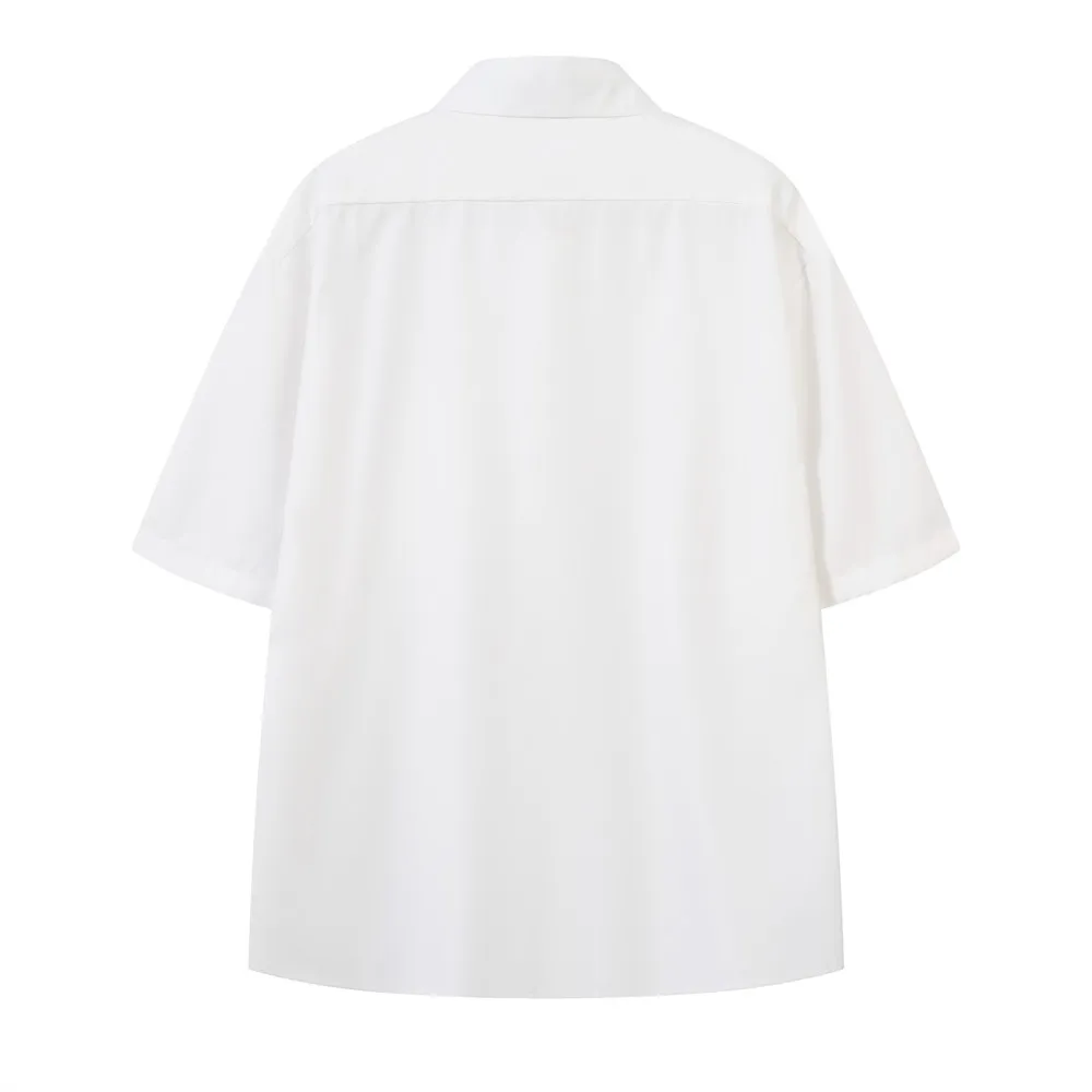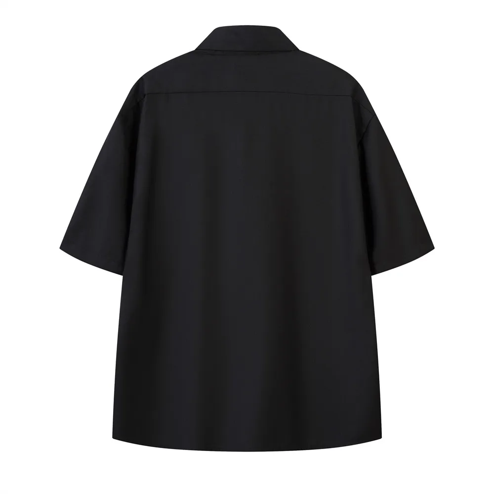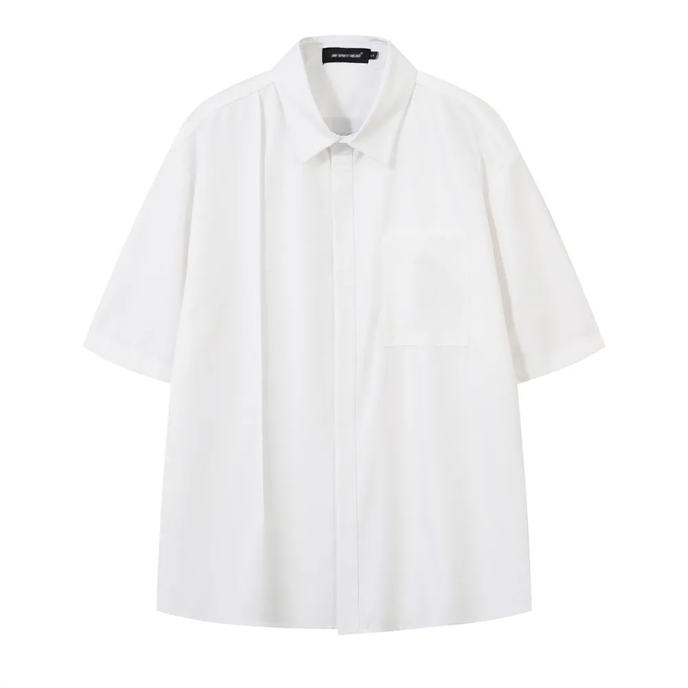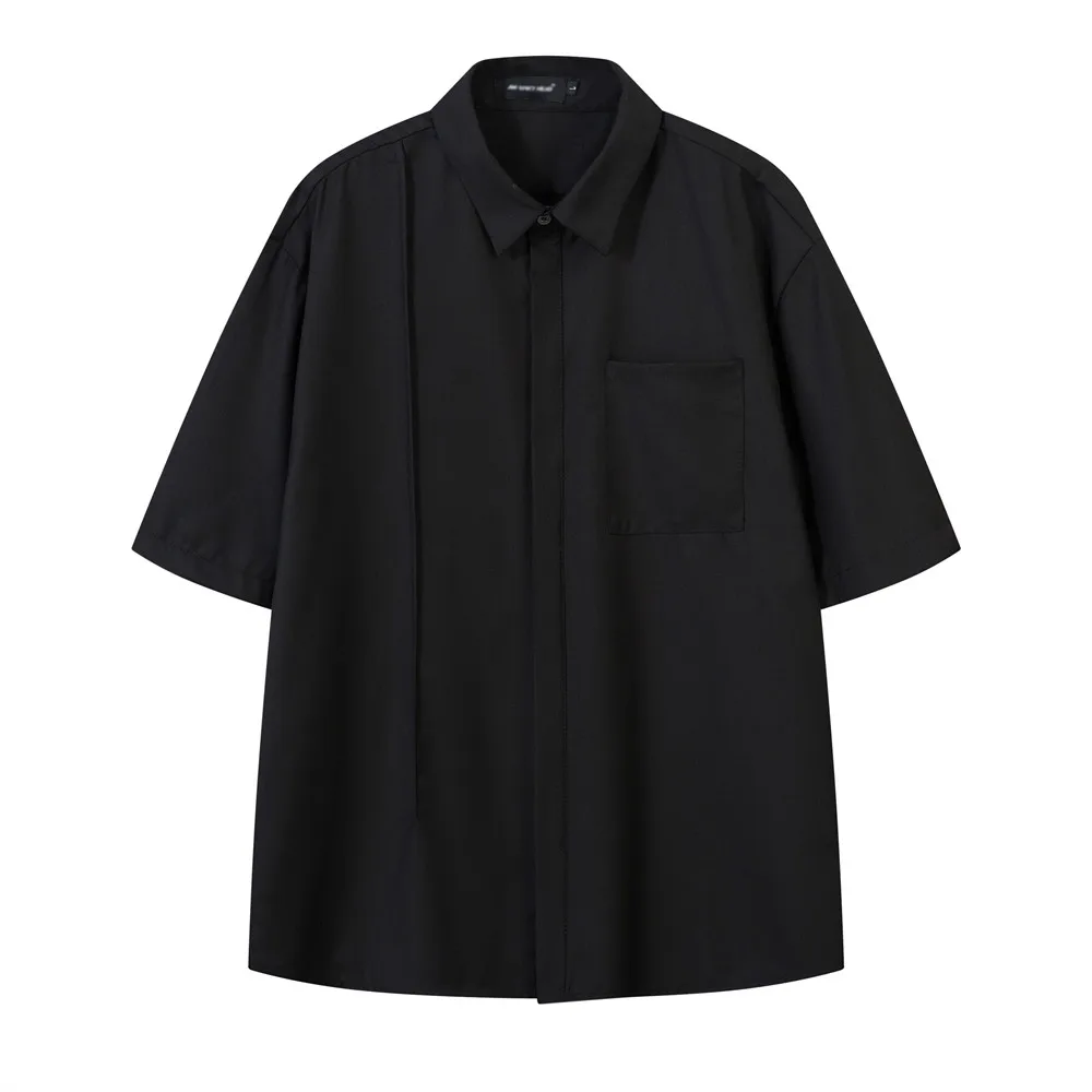 Simple Spliced Short Sleeve Shirts Mens Solid Color Summer Streetwear Loose Lape