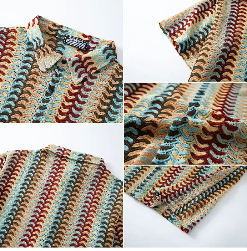Spring Summer Fashion Beach Casual Mens Shirts Knitting Cardigan For Men Vintage
