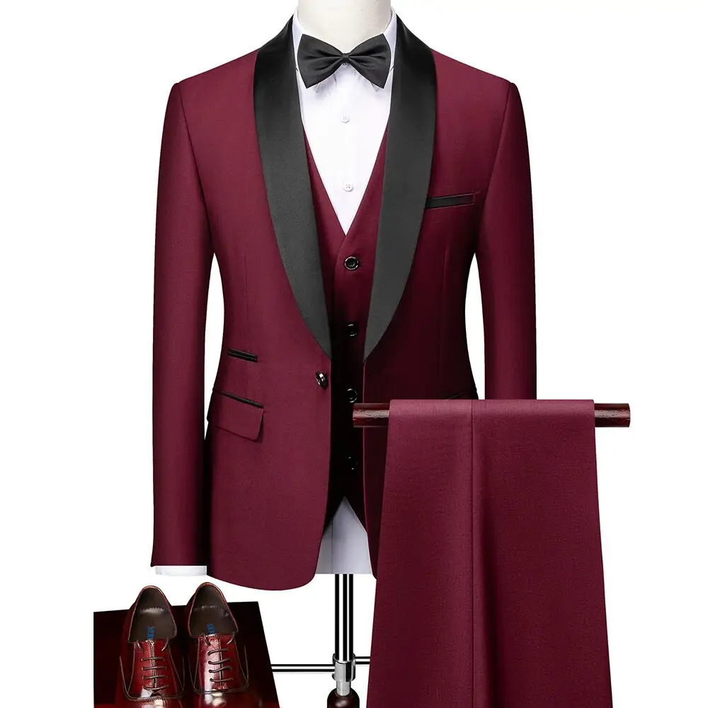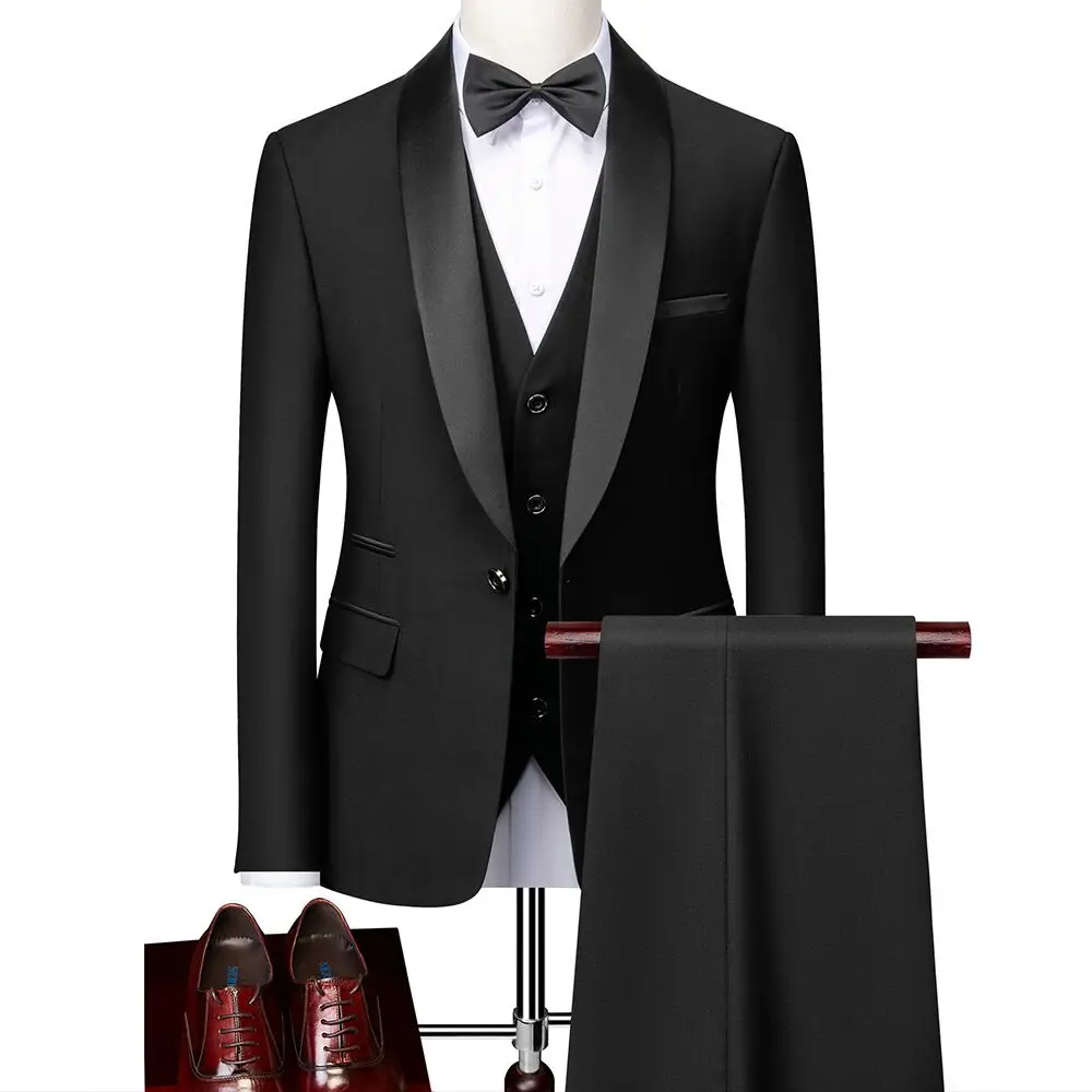 Suit (Blazer+ Vest + Pants) Men's Business Gentleman Fashion Slim Work Solid Color Plus Size Fair Dress Wedding Best Man Suits