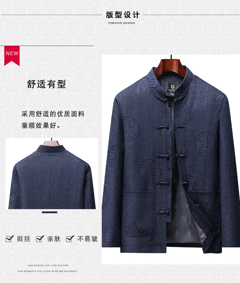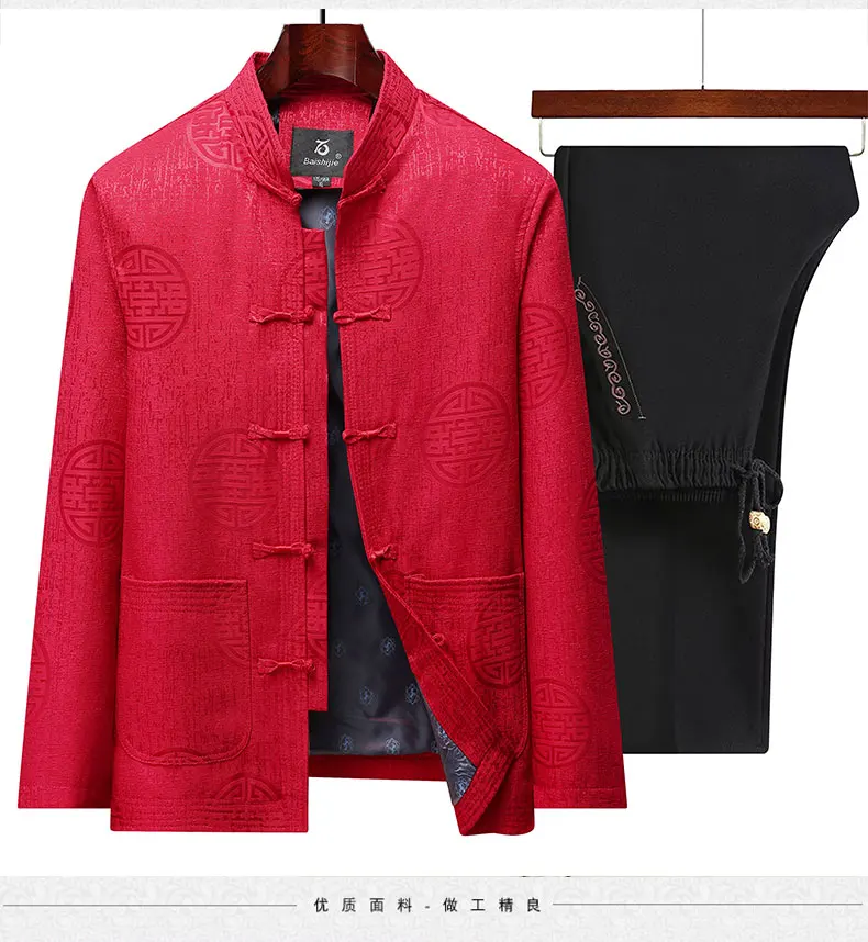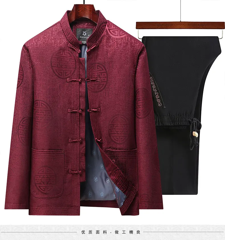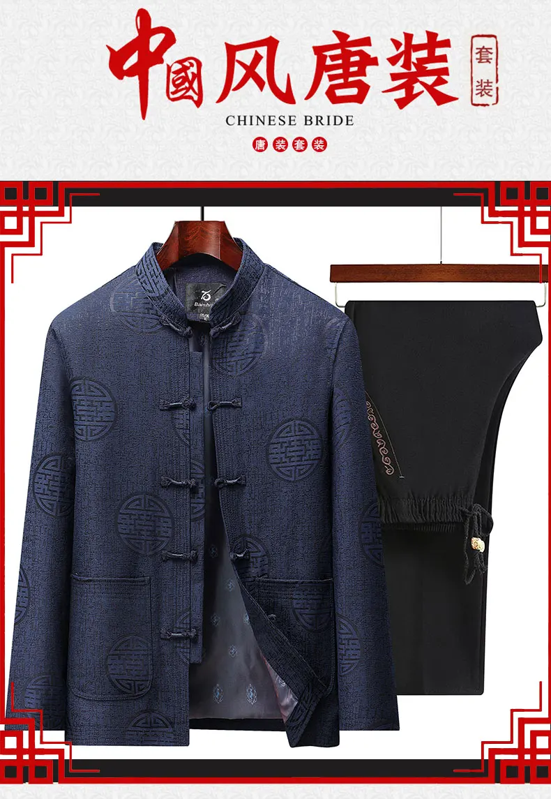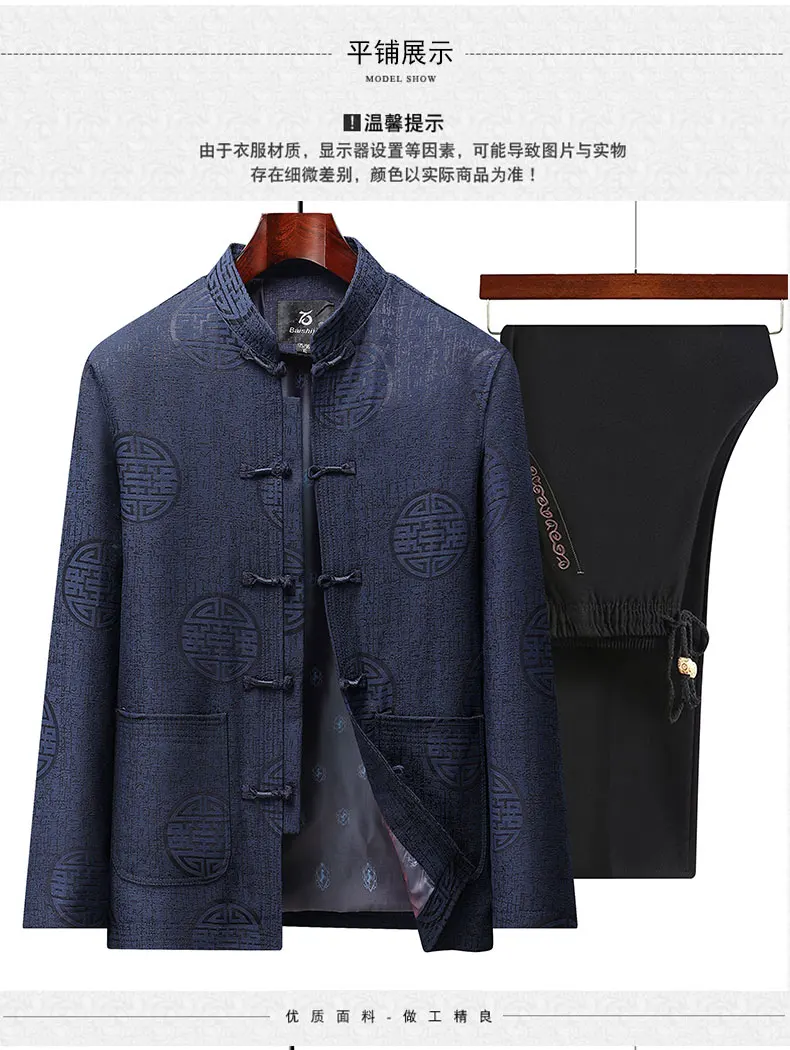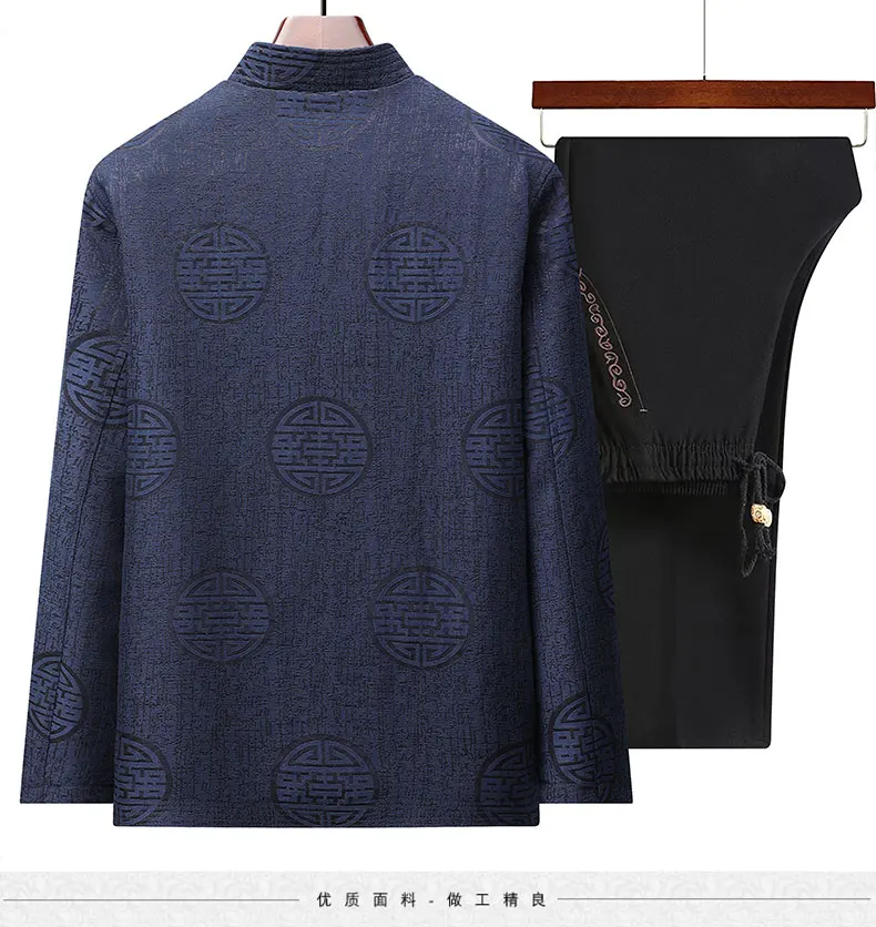 Tang Suit (top + Pants) Spring and Autumn Middle-aged and Elderly Men Father Bir