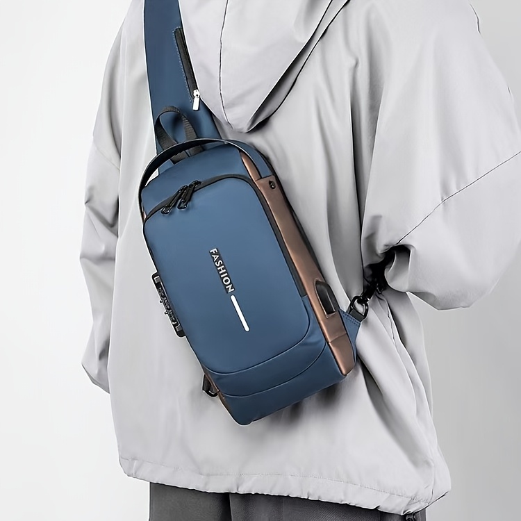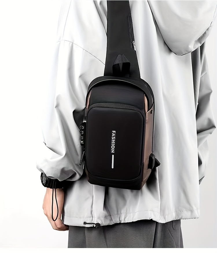 Techwear Motorcycling Chest Backpack, Men's Sling Bag Crossbody Bag With USB Cha